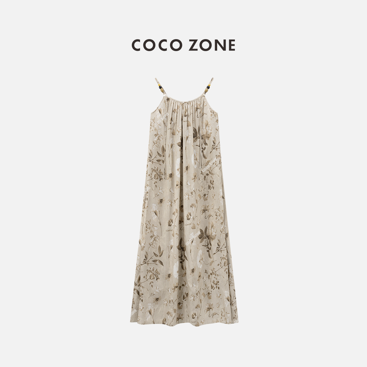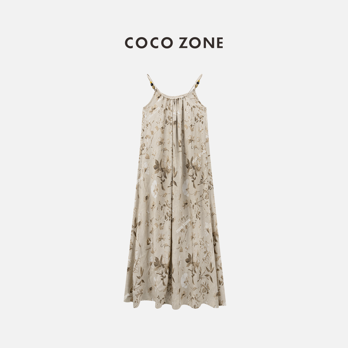 COCO ZONE2024"花卉裙”夏季复古花纹A字吊带连衣裙无袖露肩长裙CC1B0843