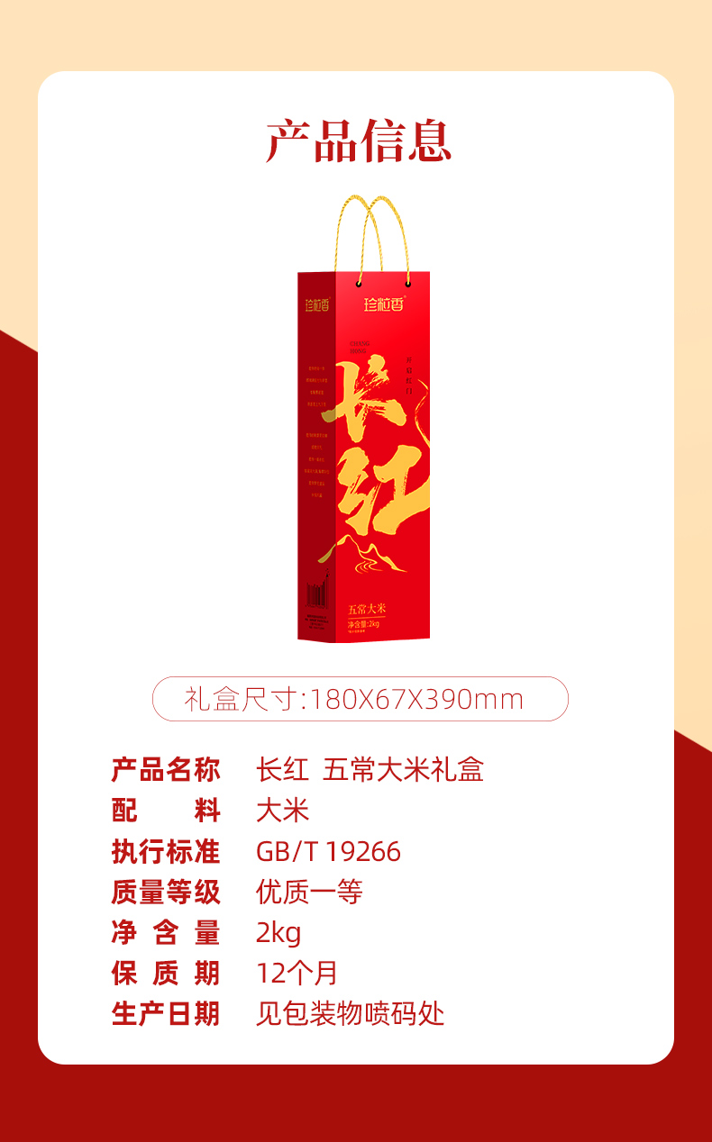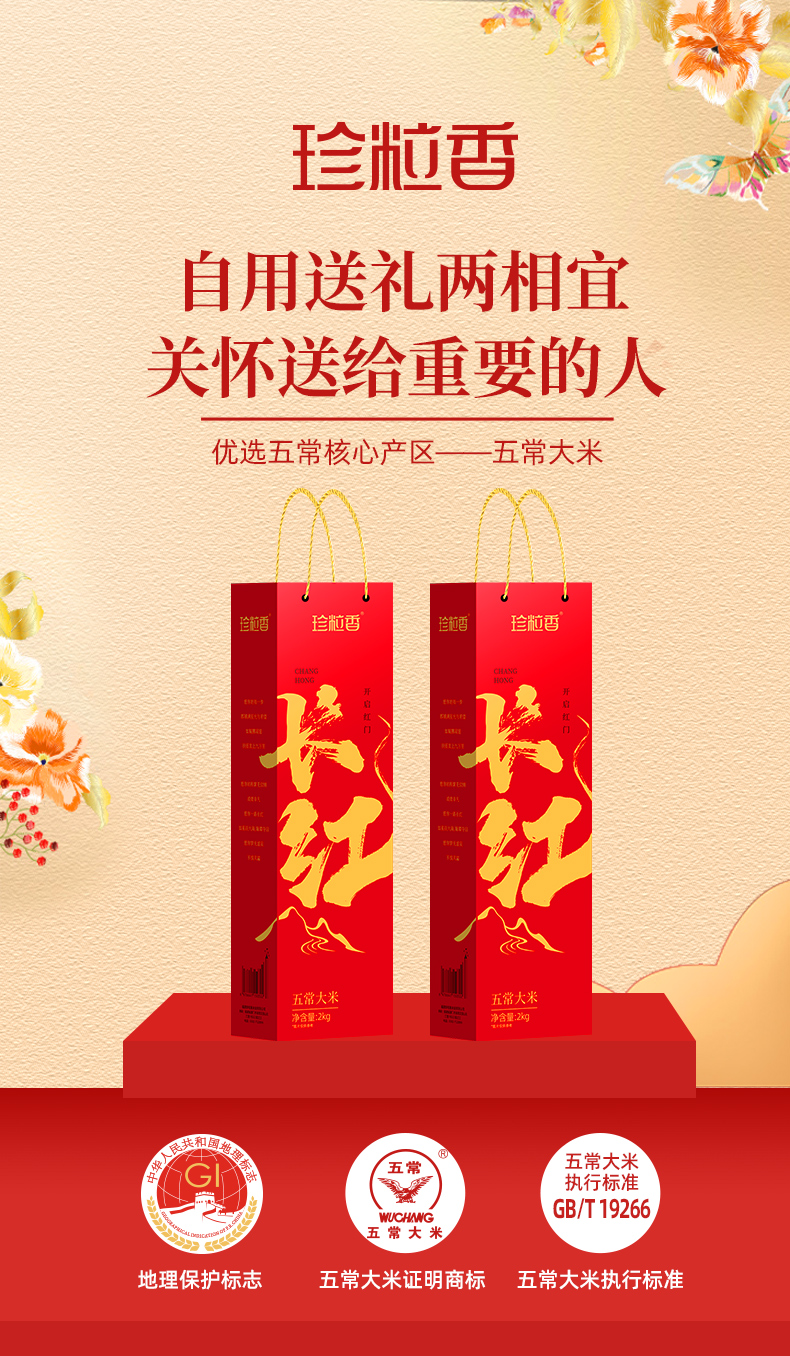 珍粒香长红五常大米2kg礼盒