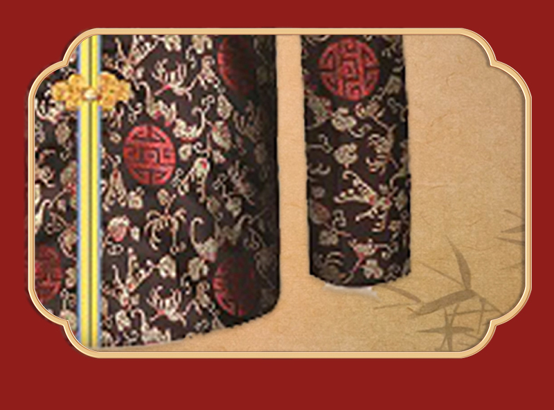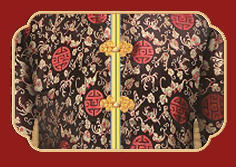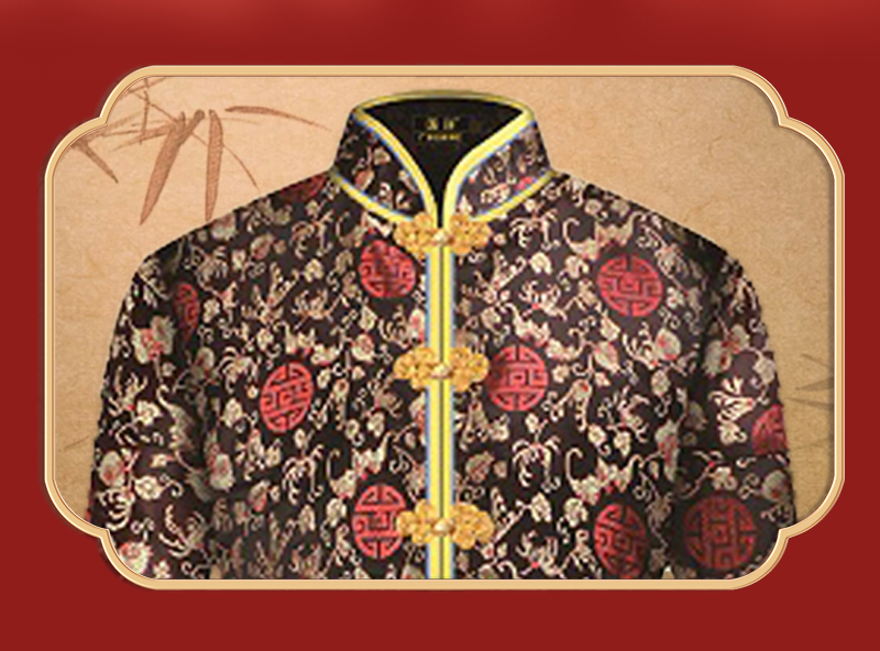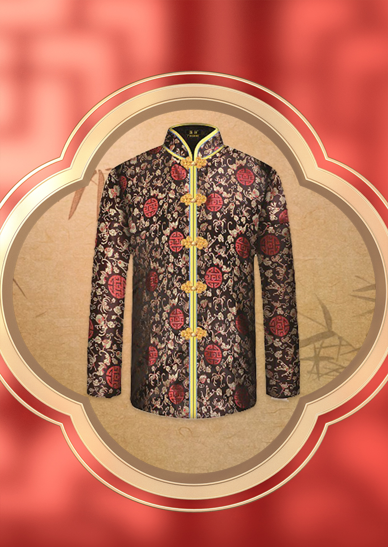 男士薄款织锦唐装黑底红福团6件套寿衣寿服套装