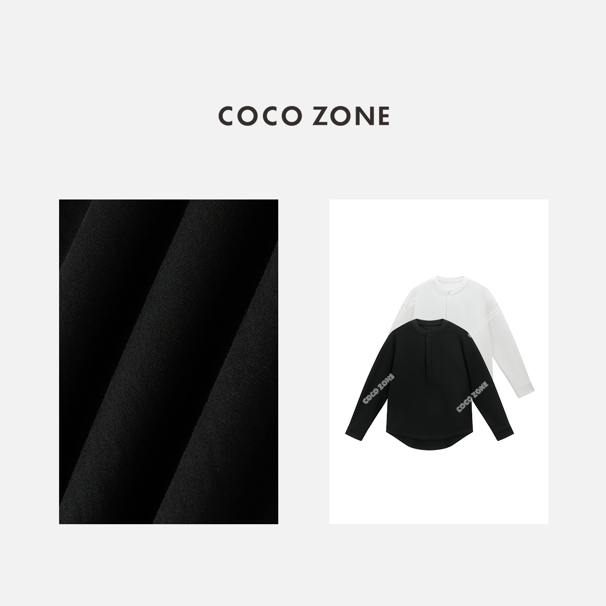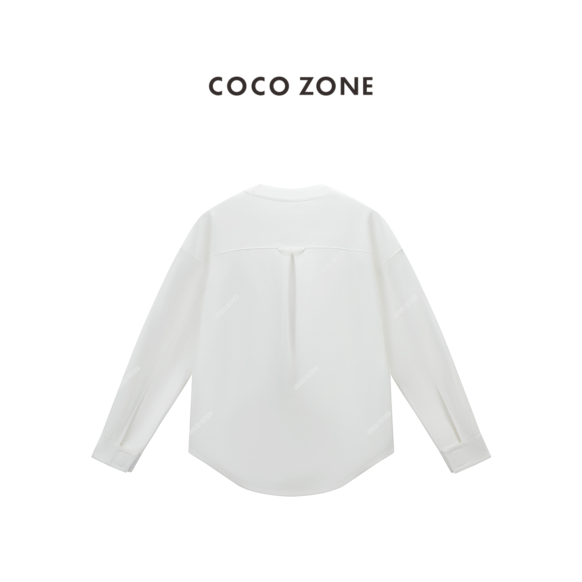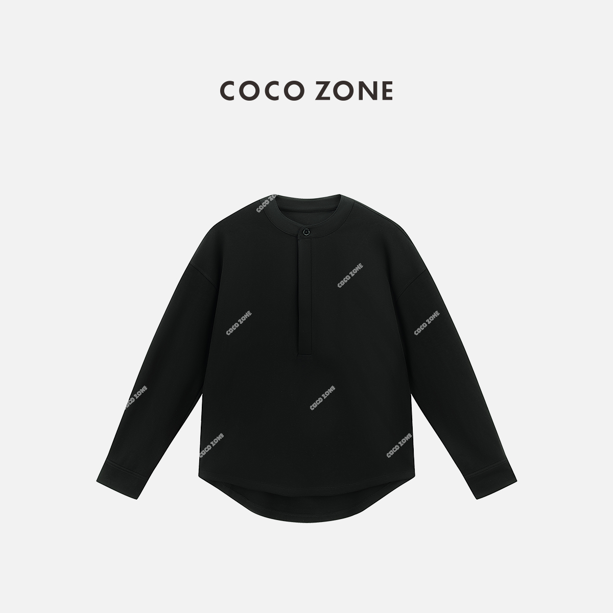COCO ZONE 设计感下摆弧形上衣简约立领长袖T恤CC2C1576