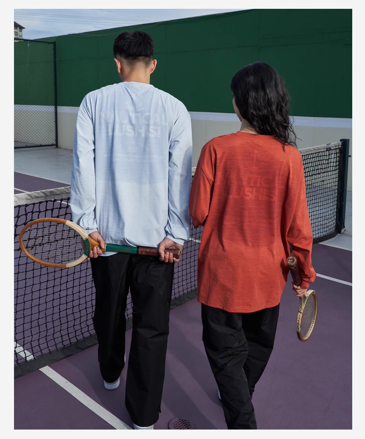 LUSHISI秋季[日落篮球]网眼速干运动长袖t恤男训练投篮服美式街头