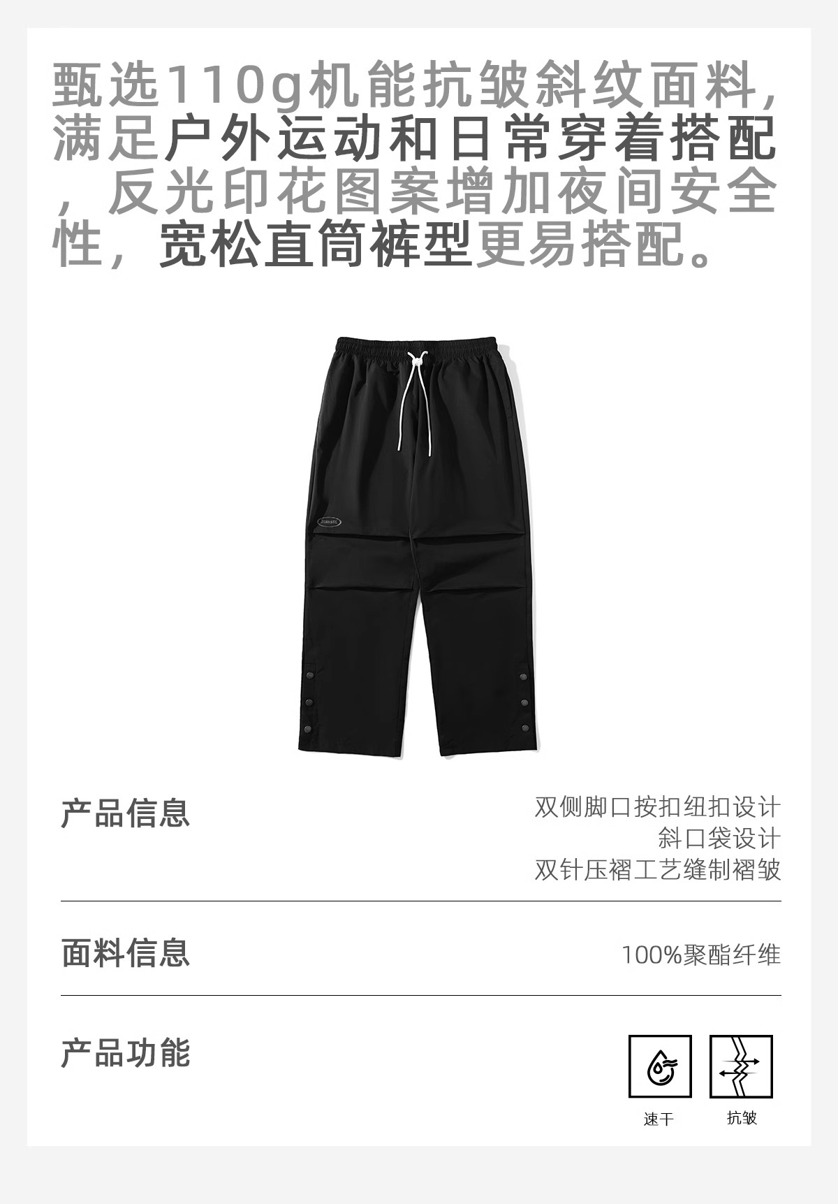 LUSHISI「反光印花」舰行主题机能半排扣直筒长裤速干舒适运动裤