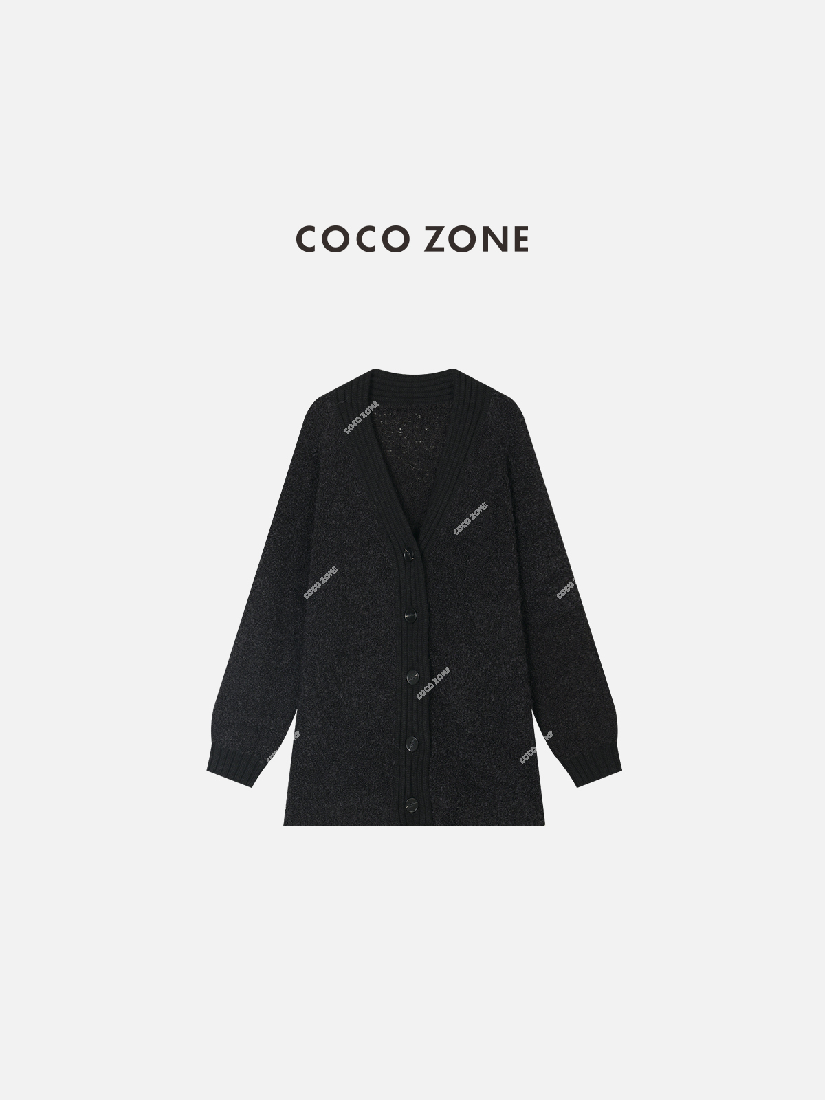 COCO ZONE中长款V领单排扣长袖外套针织衫百搭 23C19364