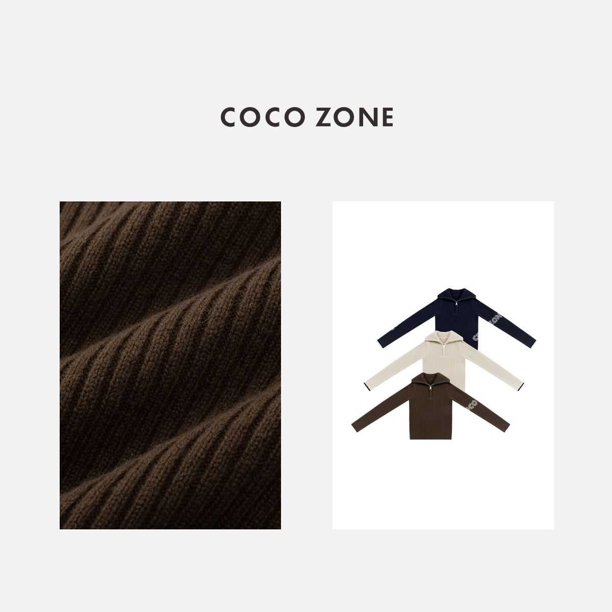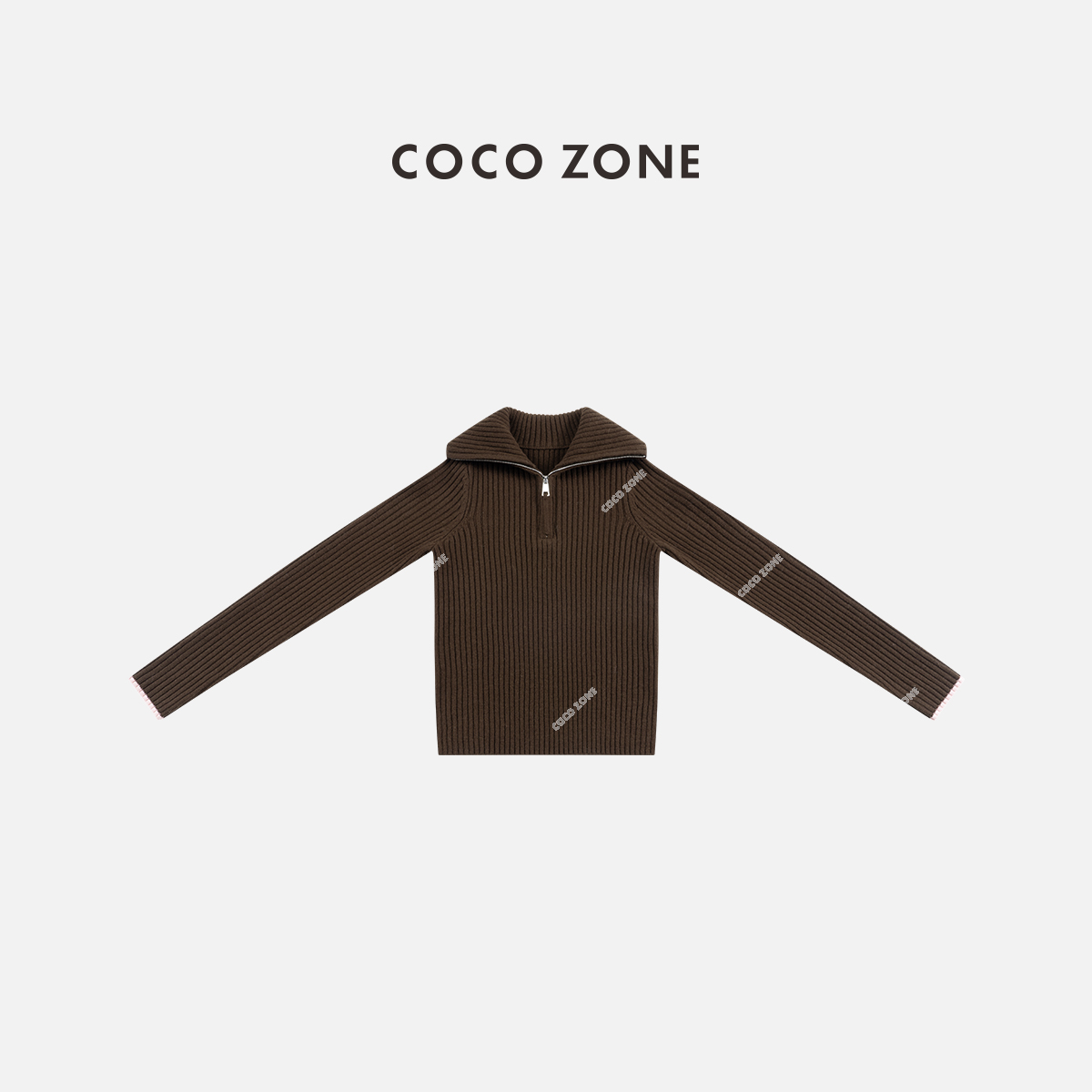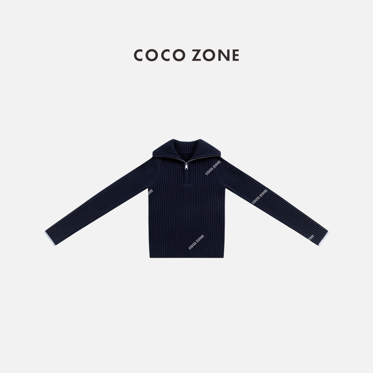 COCO ZONE 冬季新款半拉链立领撞色边设计针织衫CC1D2861