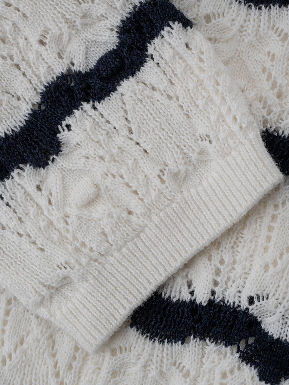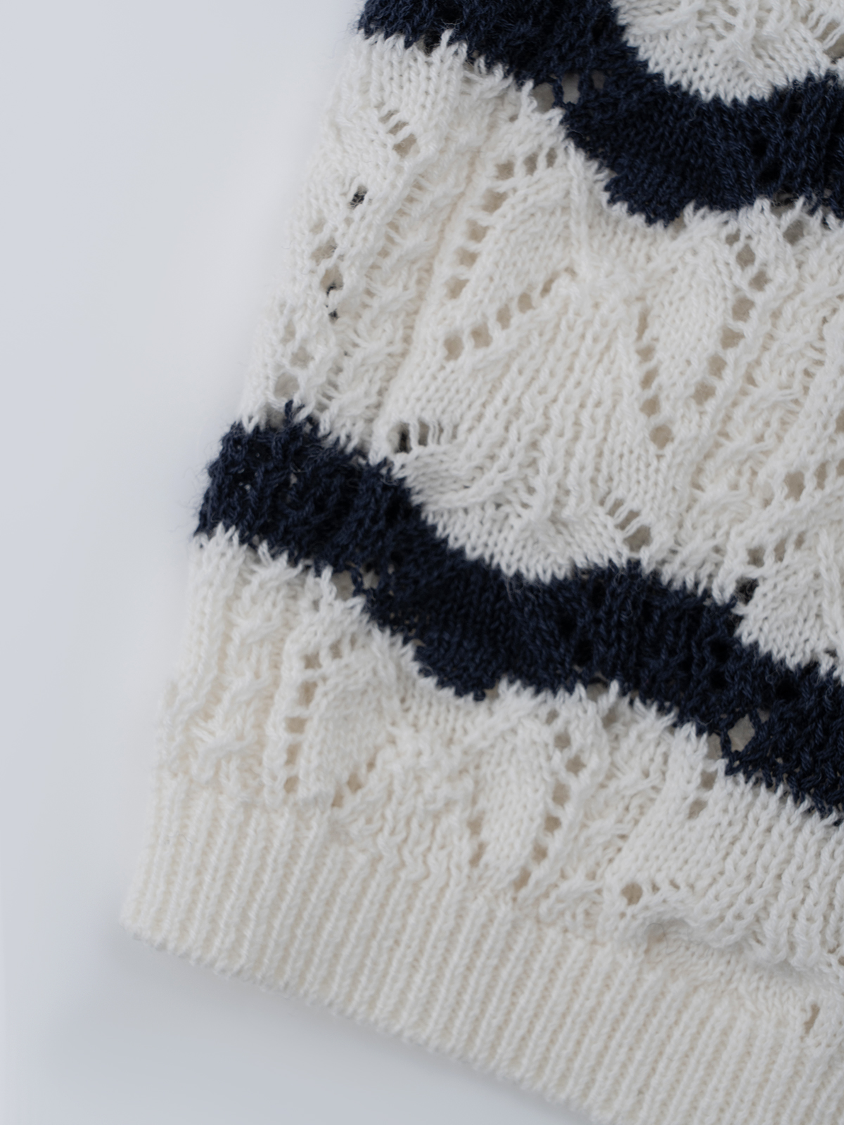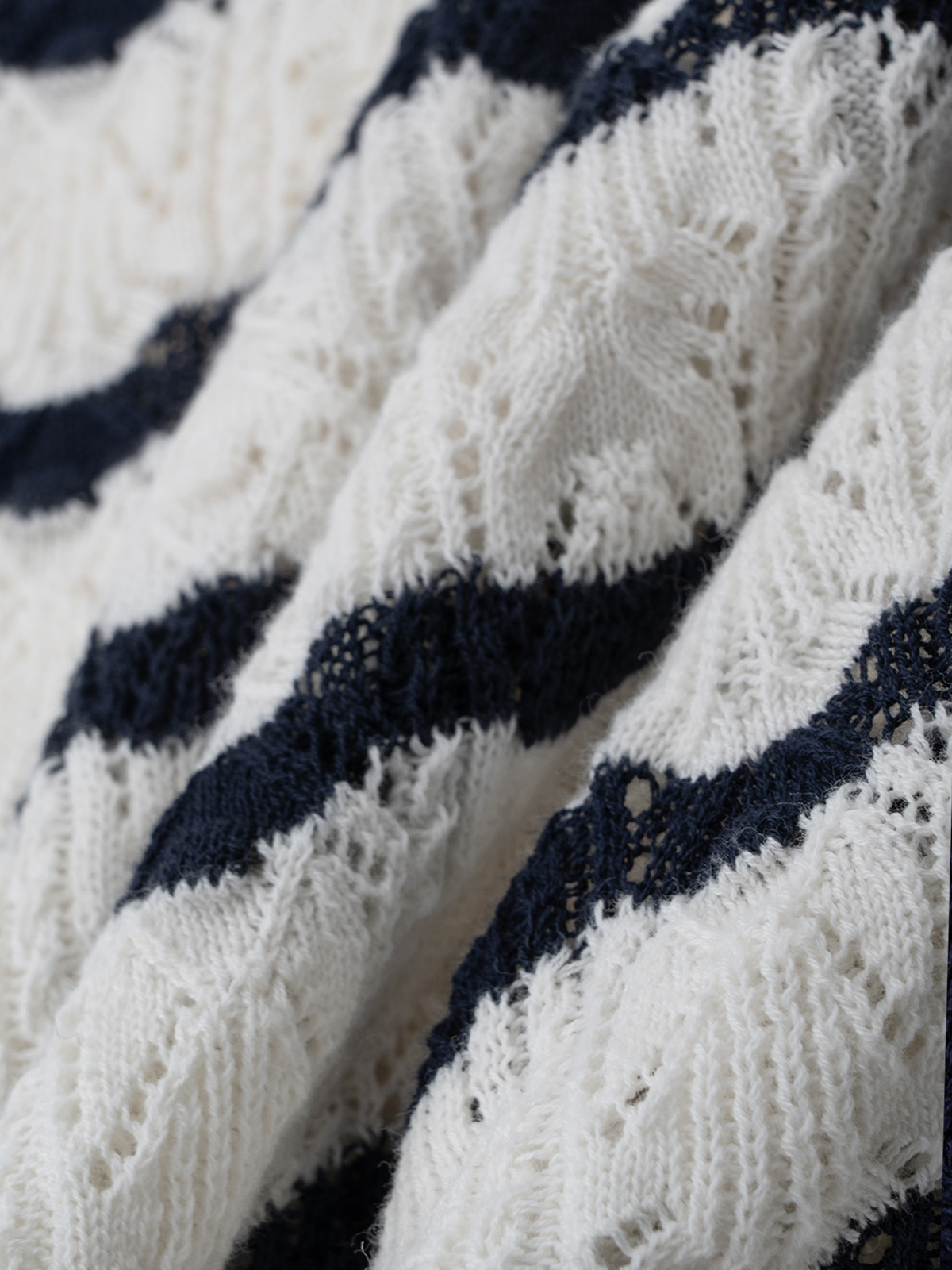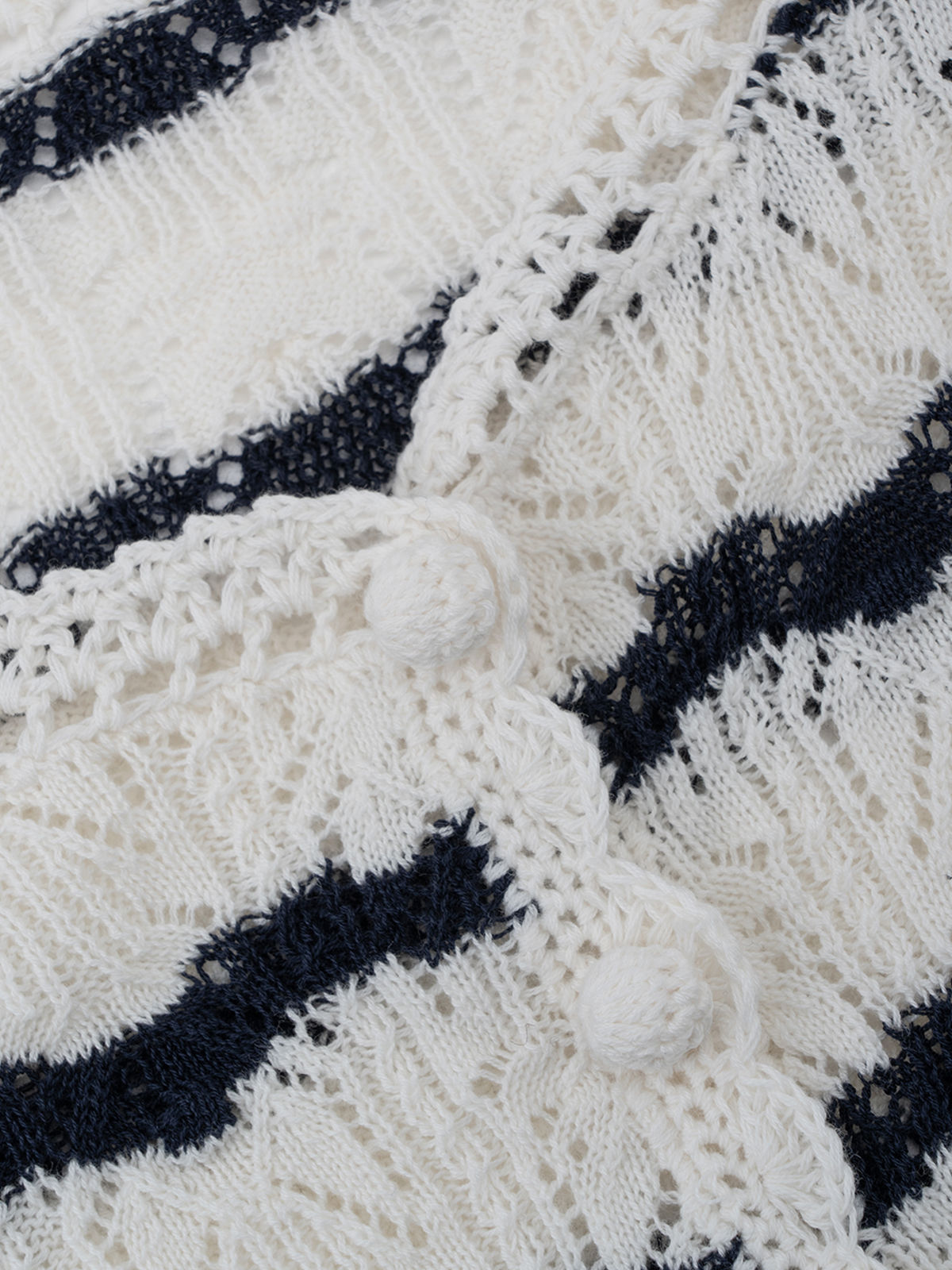 COCO ZONE ”迪迪小姐“ 复古镂空条纹针织衫长袖单排扣上衣CC2B0986