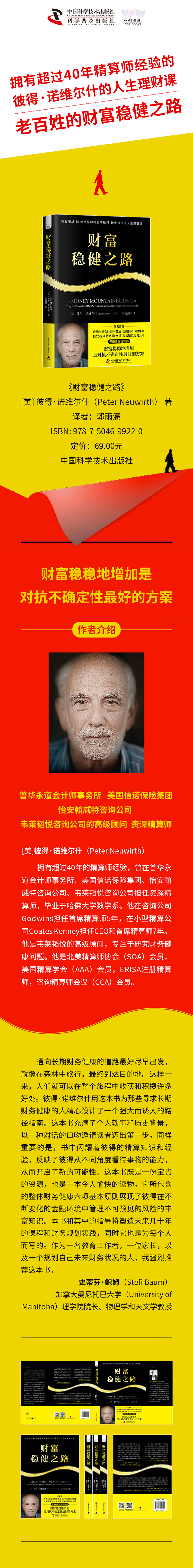 1.作者是普华永道会计师事务所、美国信诺保险集团、怡安翰威特咨询公司、韦莱韬悦咨询公司的高级顾问,资深精算师,毕业于哈佛大学数学系。 2.拥有超过40年精算师经验的彼得·诺维尔什的人生理财课。 3.老百姓的财富稳健之路