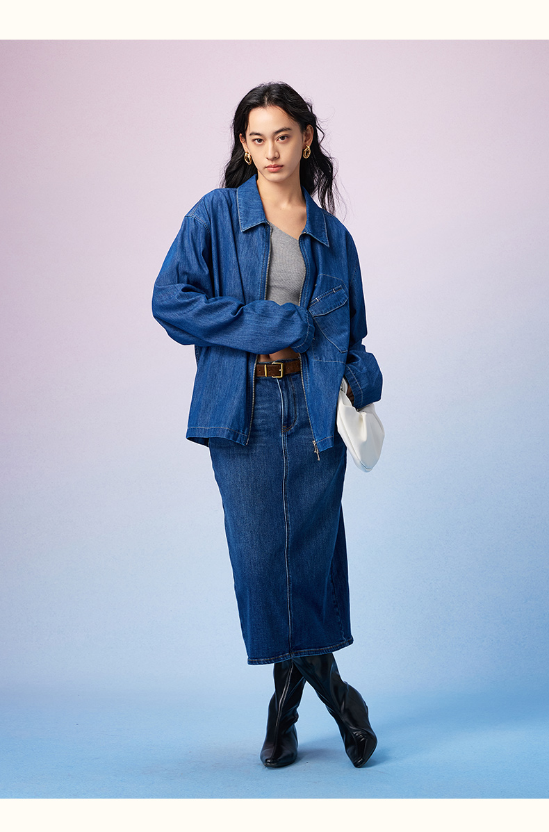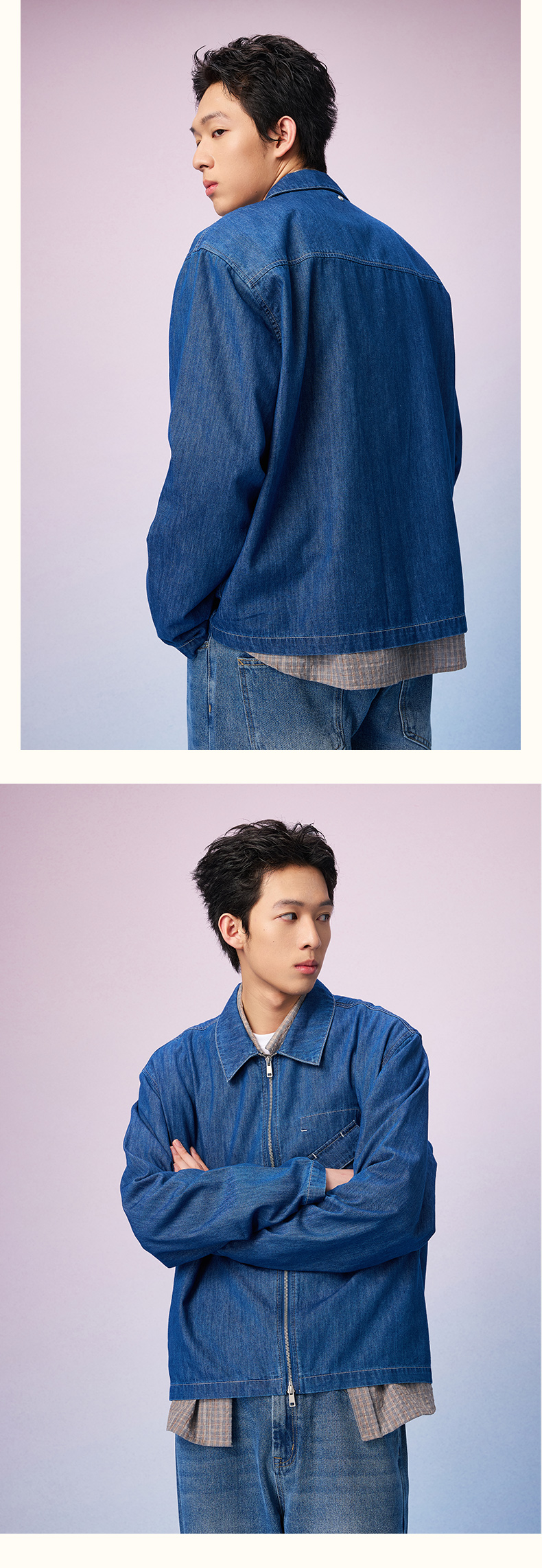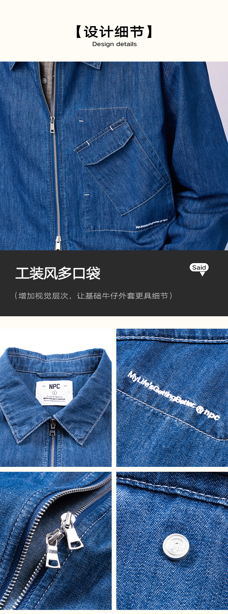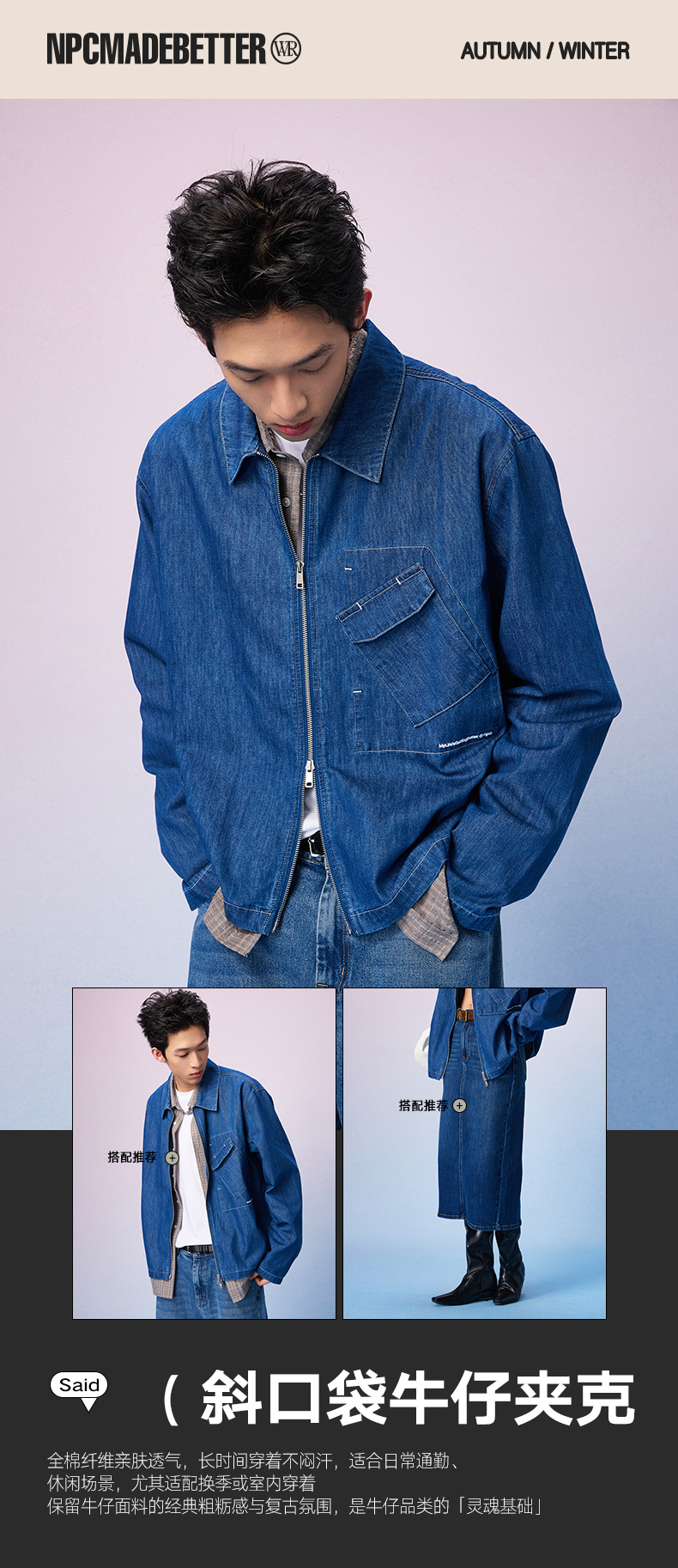 NPC潮牌不规则口袋设计翻领牛仔拉链夹克男短款秋季新款NP57DC09