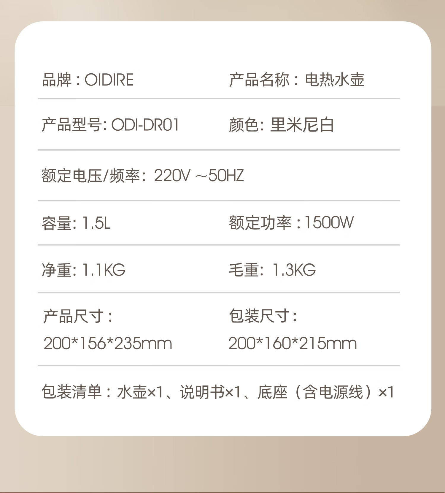 OIDIRE 电热水壶(316+24h保温+无缝内胆)ODI-DR01