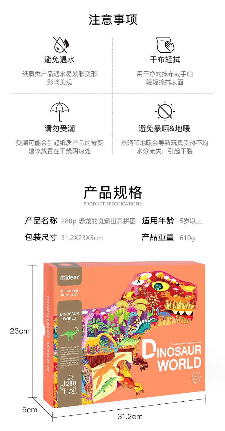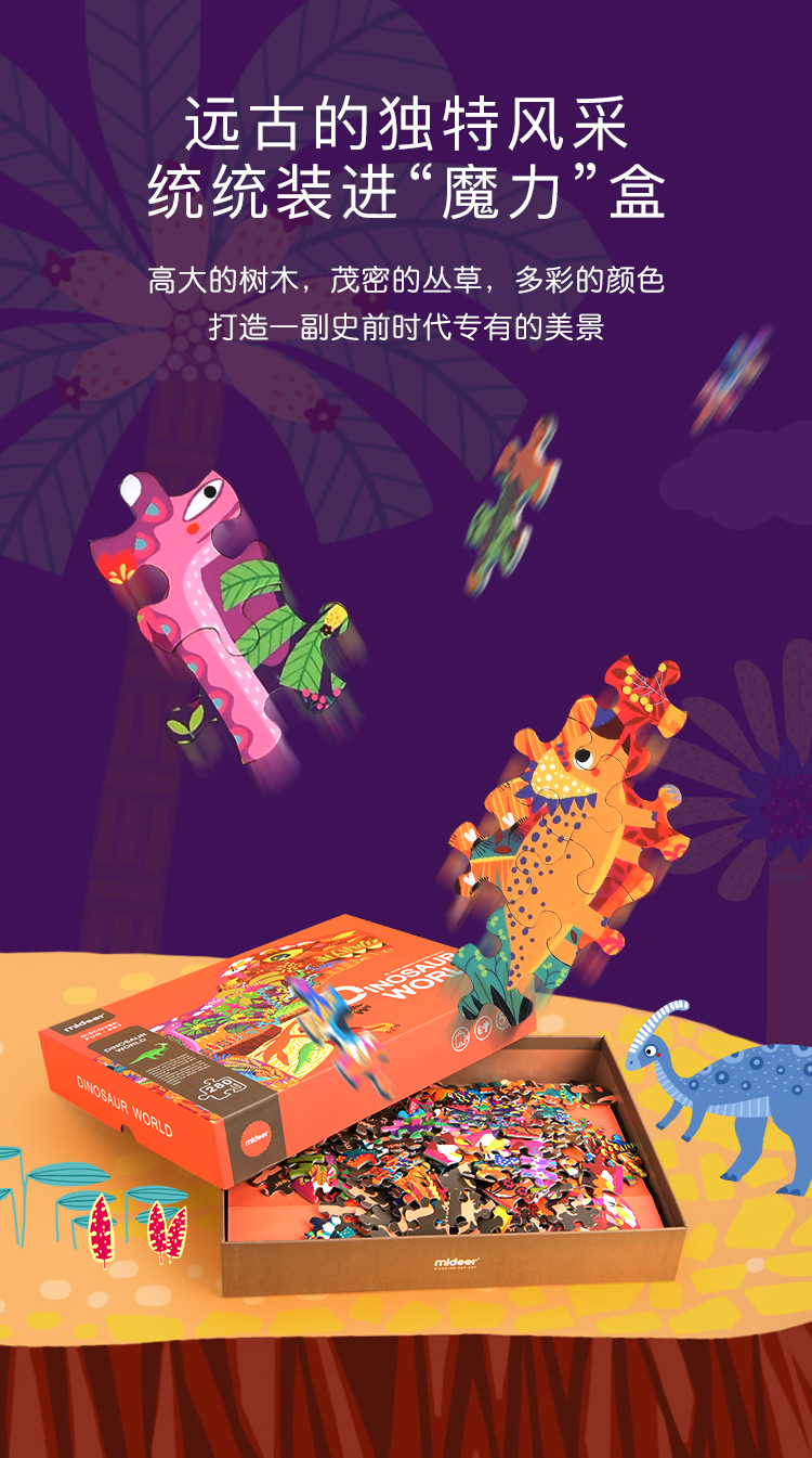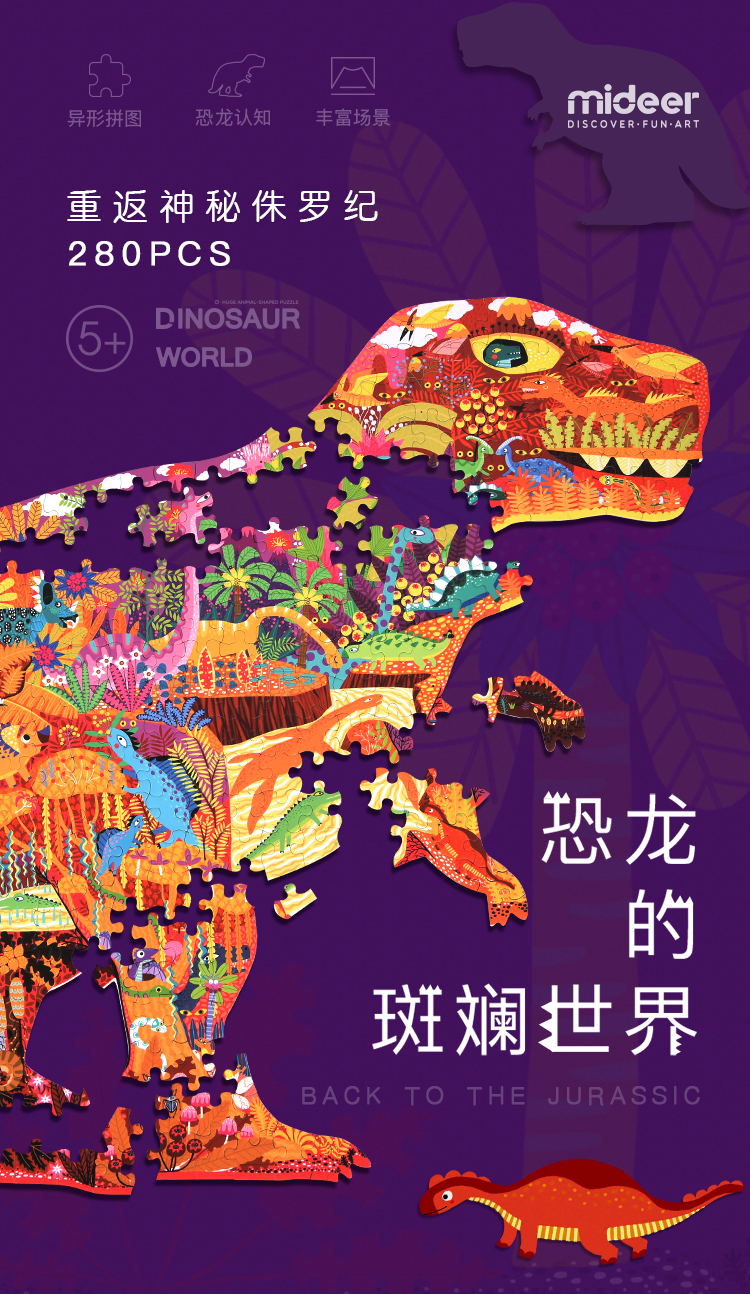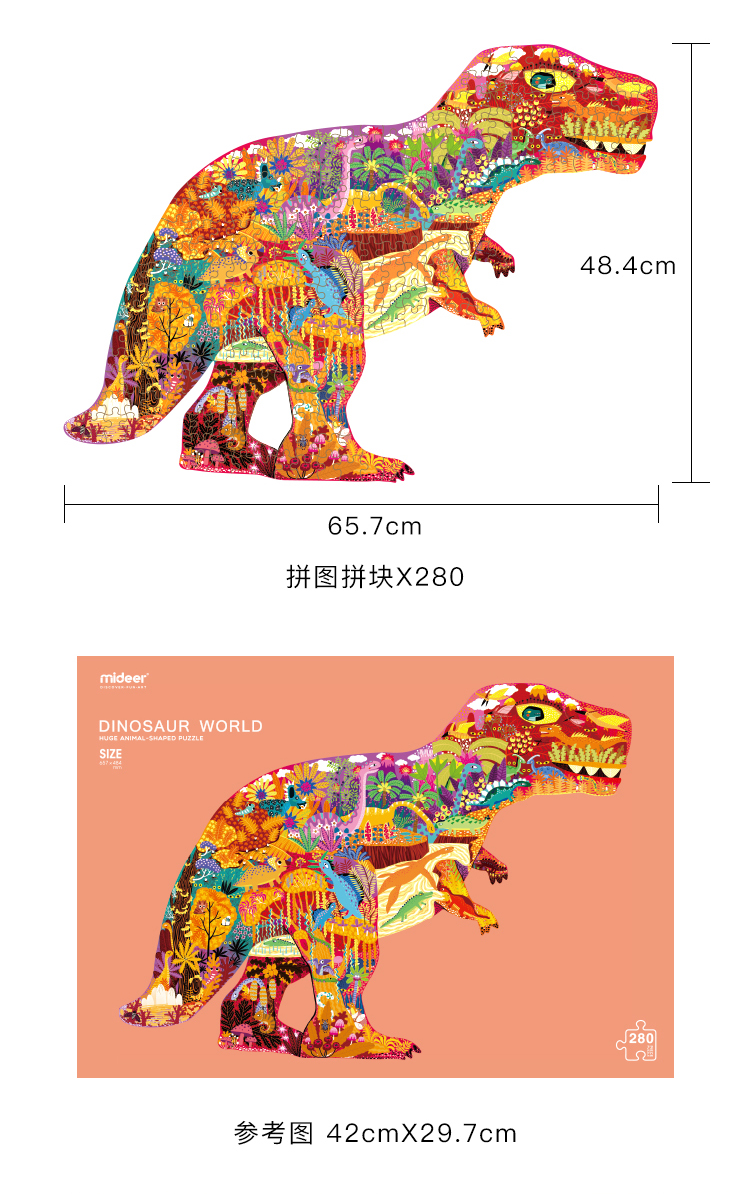 mideer弥鹿拼图儿童益智纸质280p恐龙早教玩具3-4-5-6岁