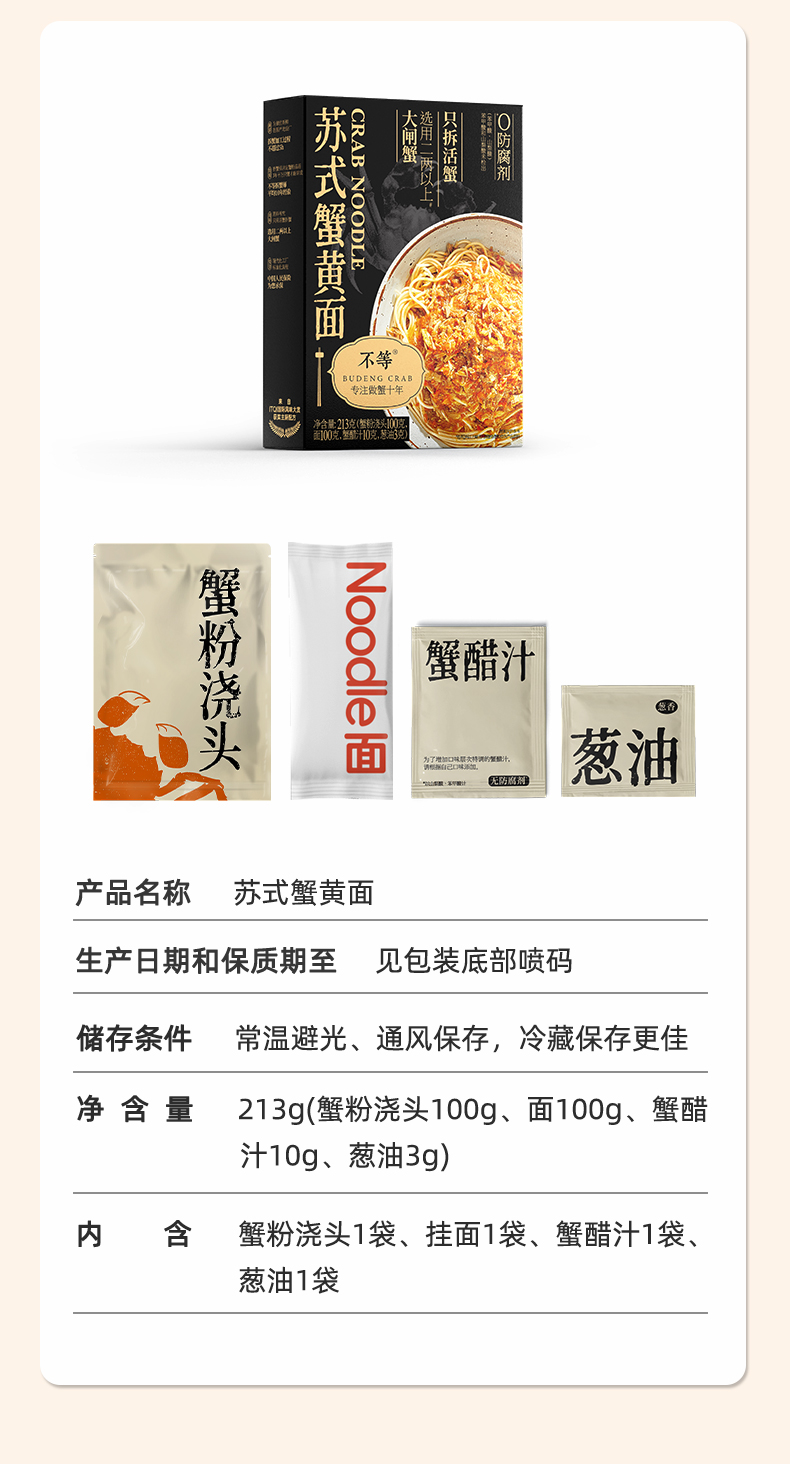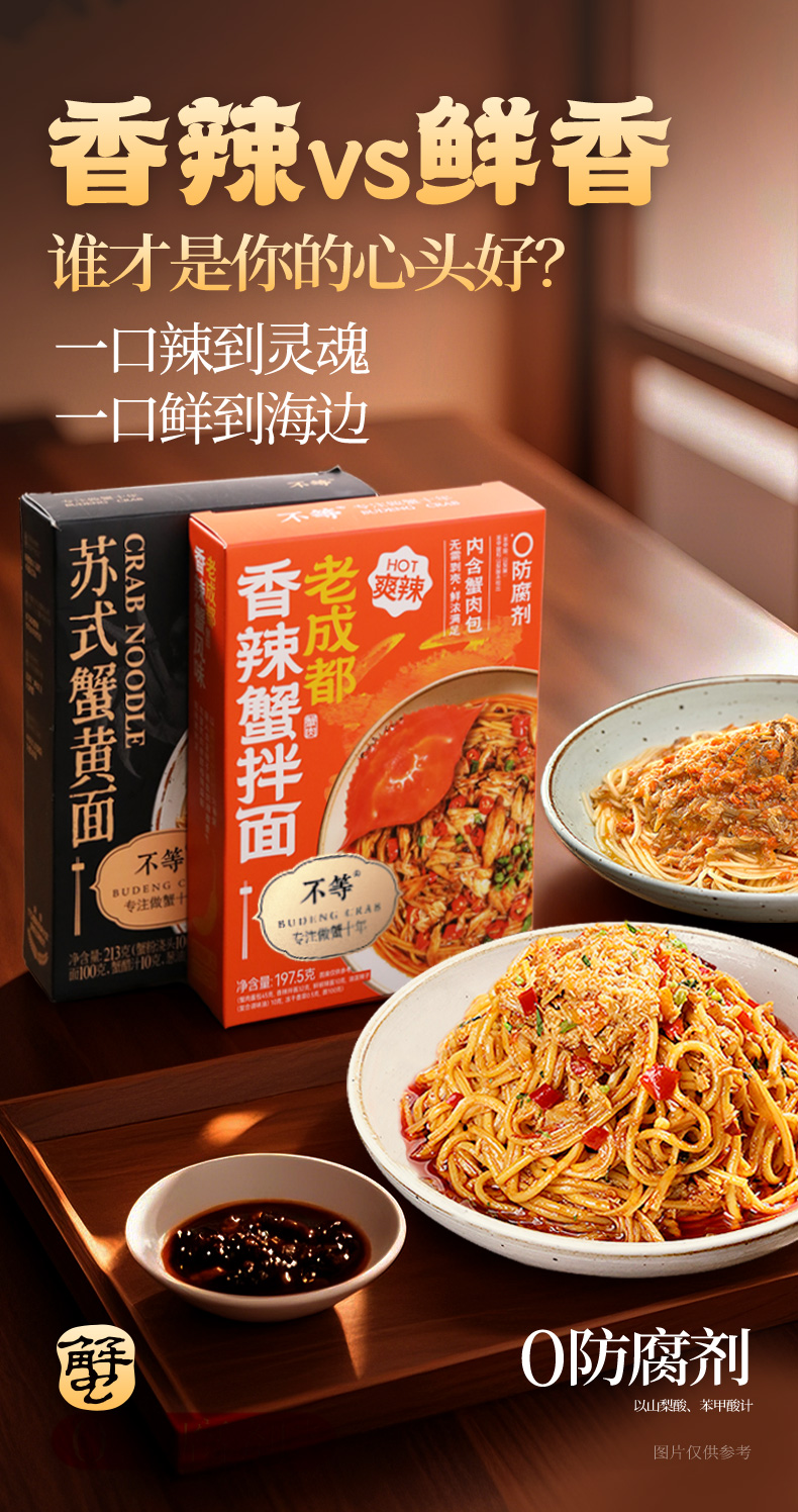 【不等】苏式蟹黄面 香辣原味拌面组合大闸蟹官方正宗蟹黄蟹肉面