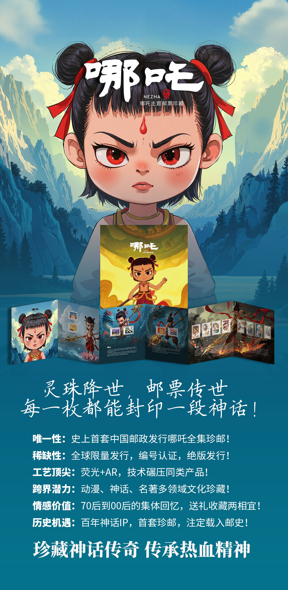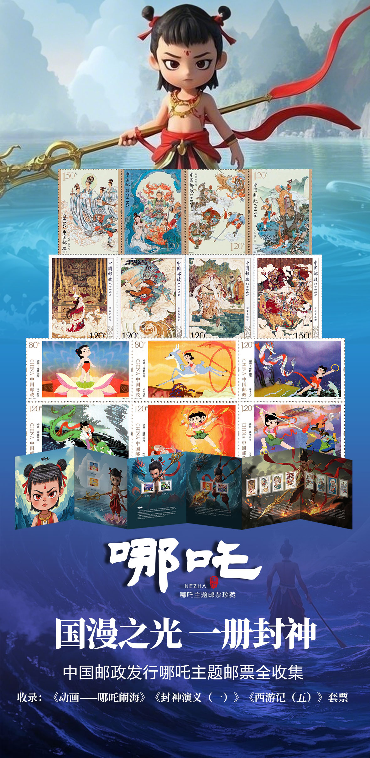 这套邮票首次将其搬上方寸,完美复刻动画中“奇、绝、壮、美”的艺术神韵,承载几代人的童年回忆。
