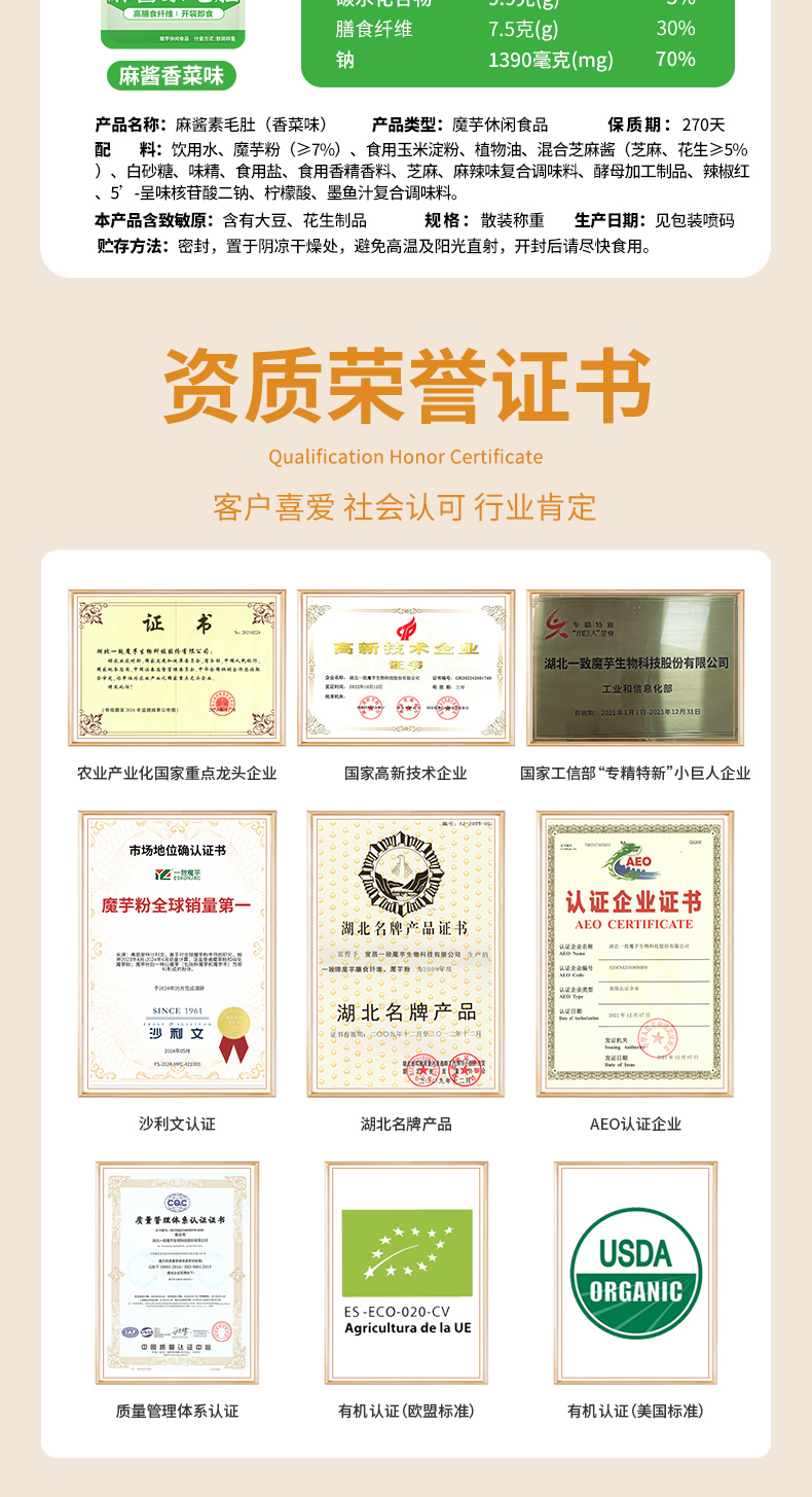 【宜昌助农馆】一致魔芋 麻酱素毛肚 混合三口味 散装休闲零食