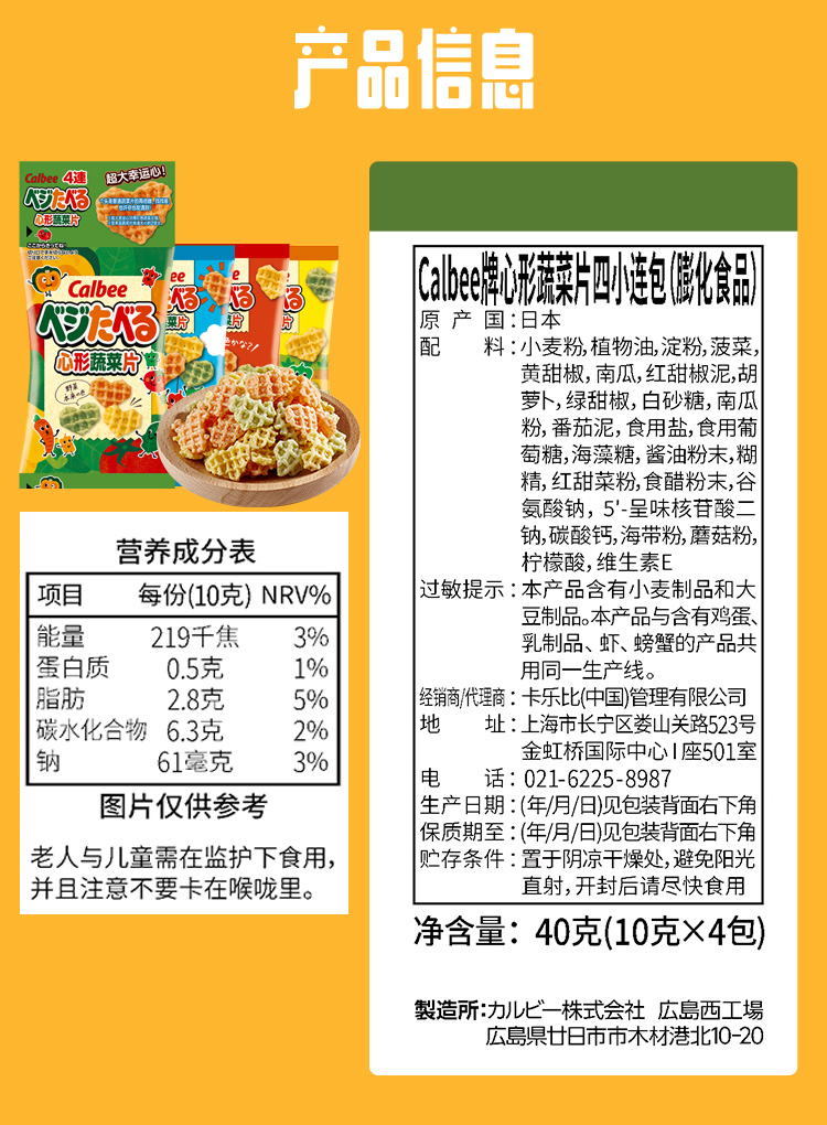 Calbee卡乐比心型蔬脆片儿童可食10g/袋