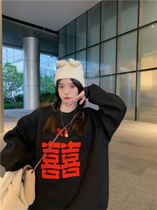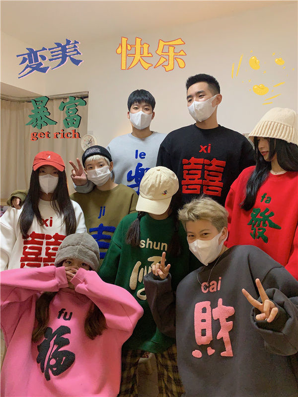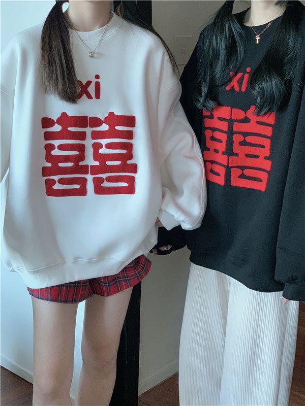 薄款国潮全家福新年衣服情侣闺蜜装年味氛围印花设计感小众卫衣女csn08