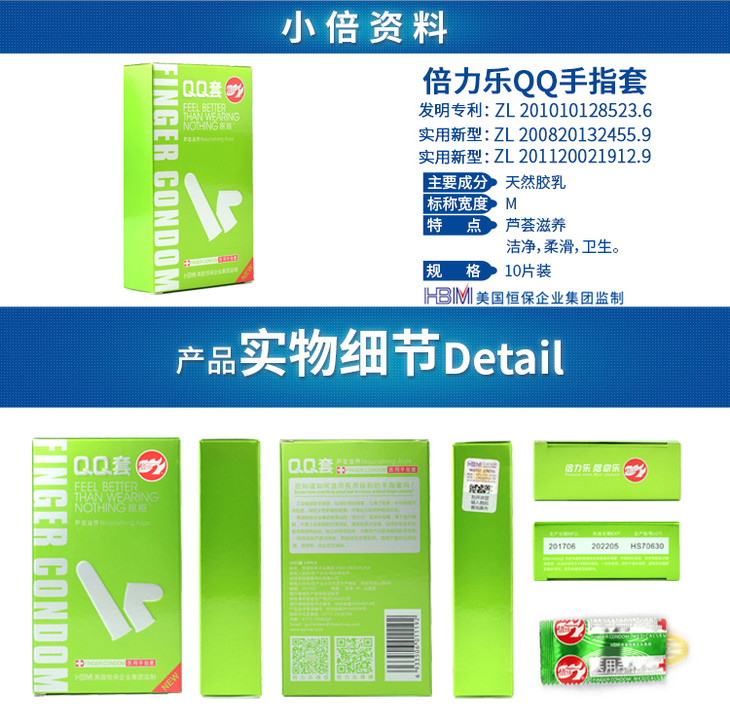 倍力乐医用级别手指套 芦荟滋养型CICI玩具可用 QQ套扣扣套10只装女性