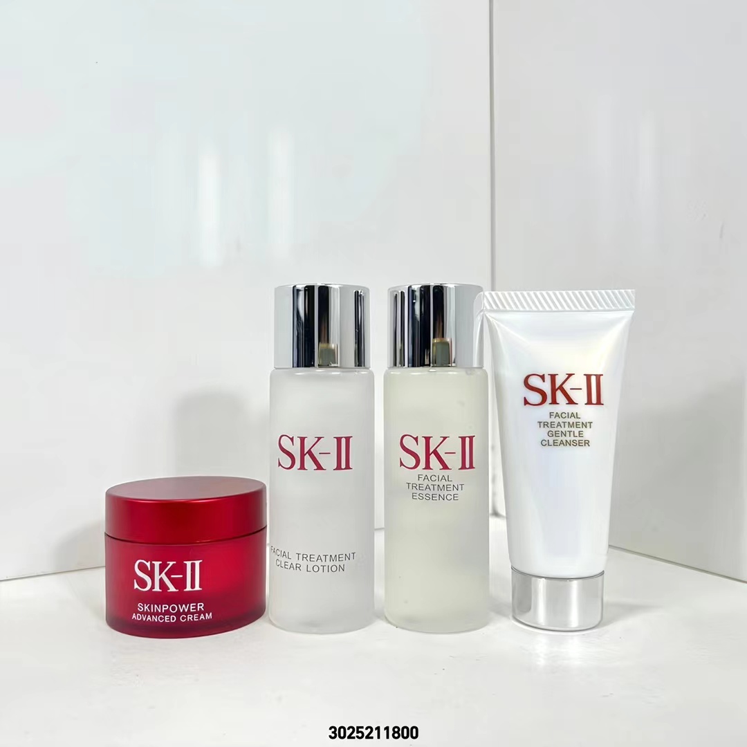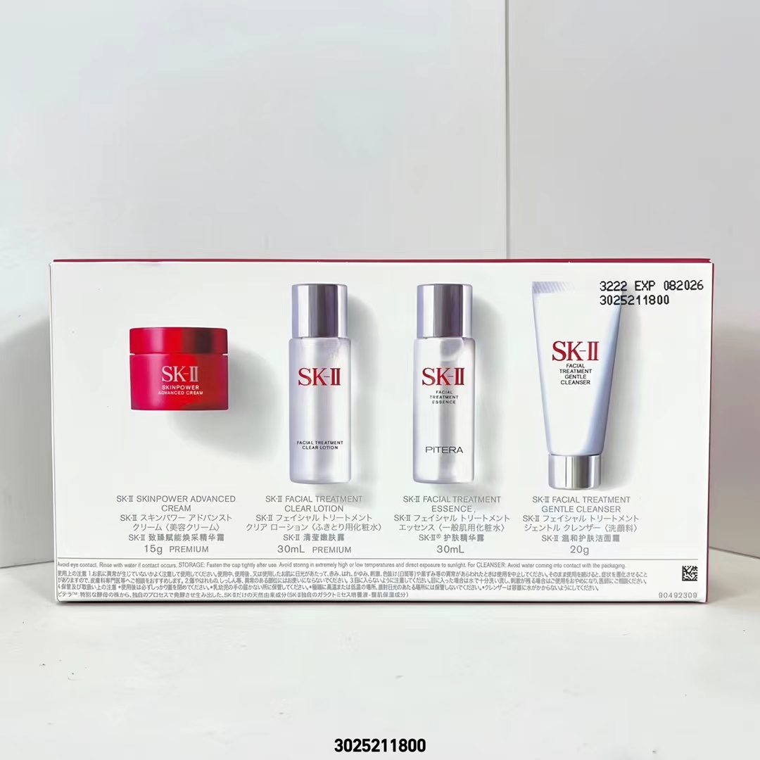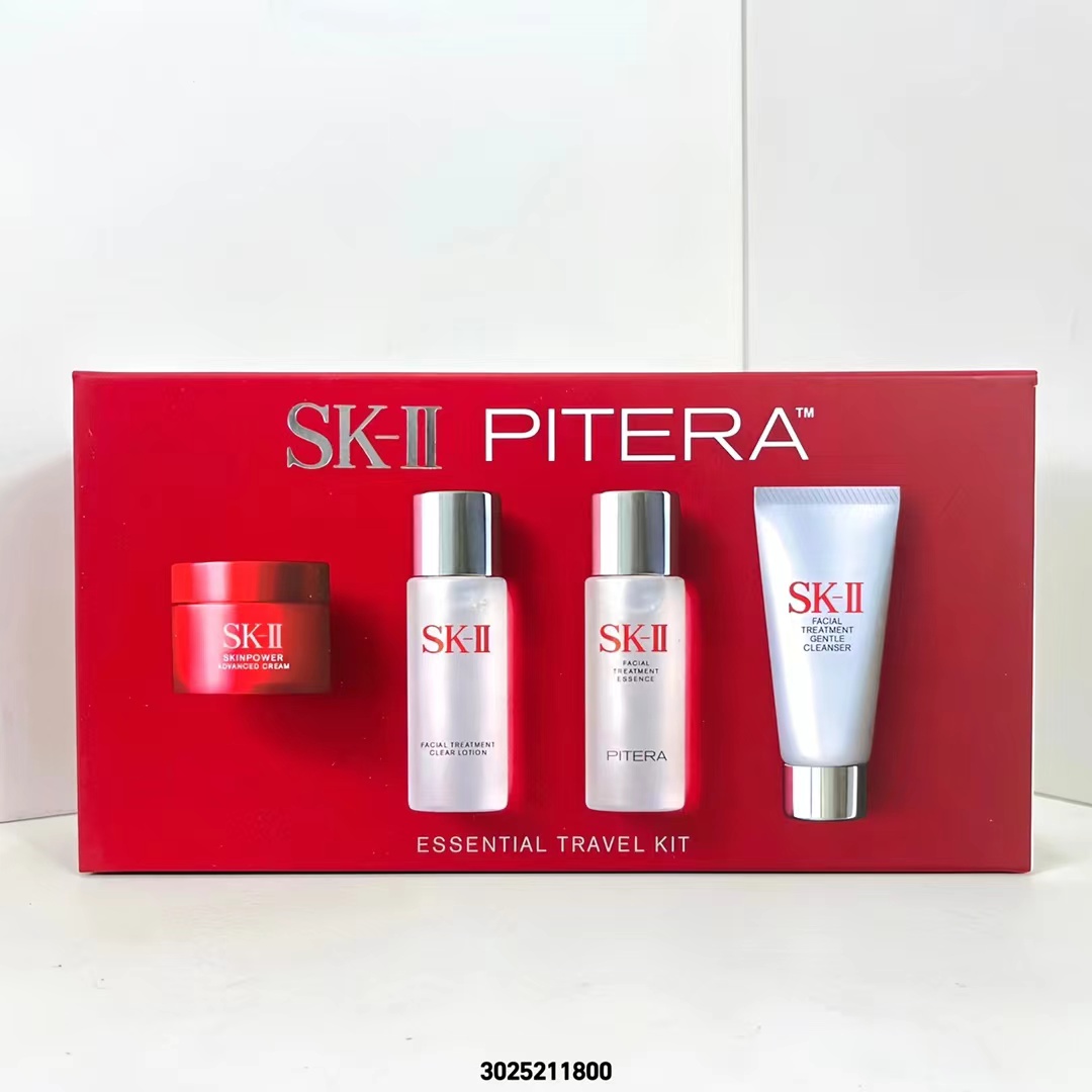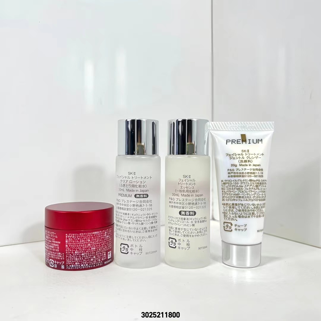 ( 新版SK小样4件套/红盒 ) 3025211800编码!专柜中文版,同步正品质量,平台团代购直出无压力,明通版。sk旅行中样4件套内含:洗面奶20g,清莹露30ml,神仙水30ml,磨砂瓶面霜15g。