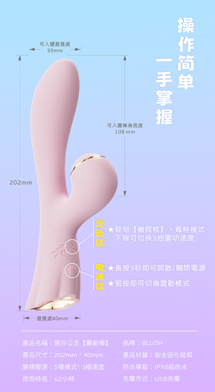 blush豌豆公主震动棒吮吸女用自慰器 高潮私处插入av棒电动按摩振动棒 女性自卫玩具成人夫妻房事情趣用品工具