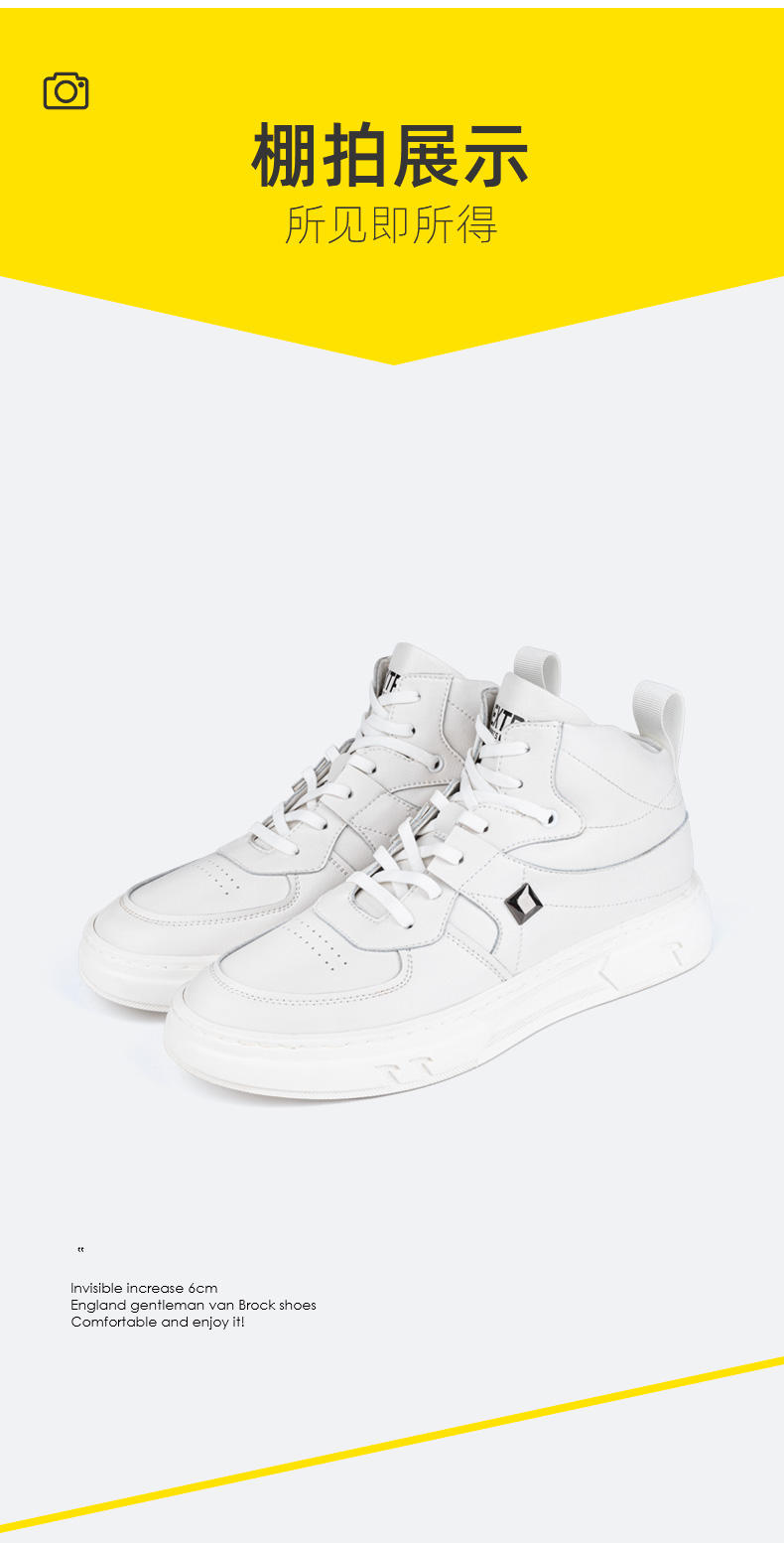 舒乐高鞋子增高鞋6cm新款休闲鞋夏季透气板鞋小白鞋男款布面男鞋