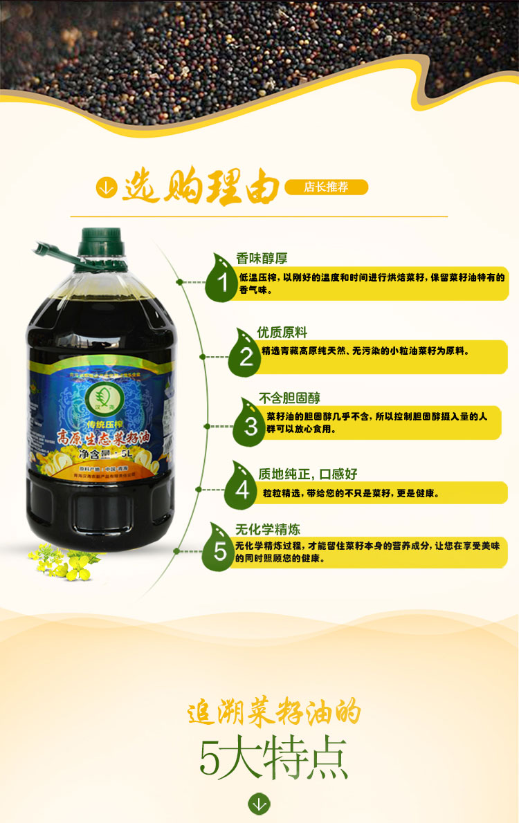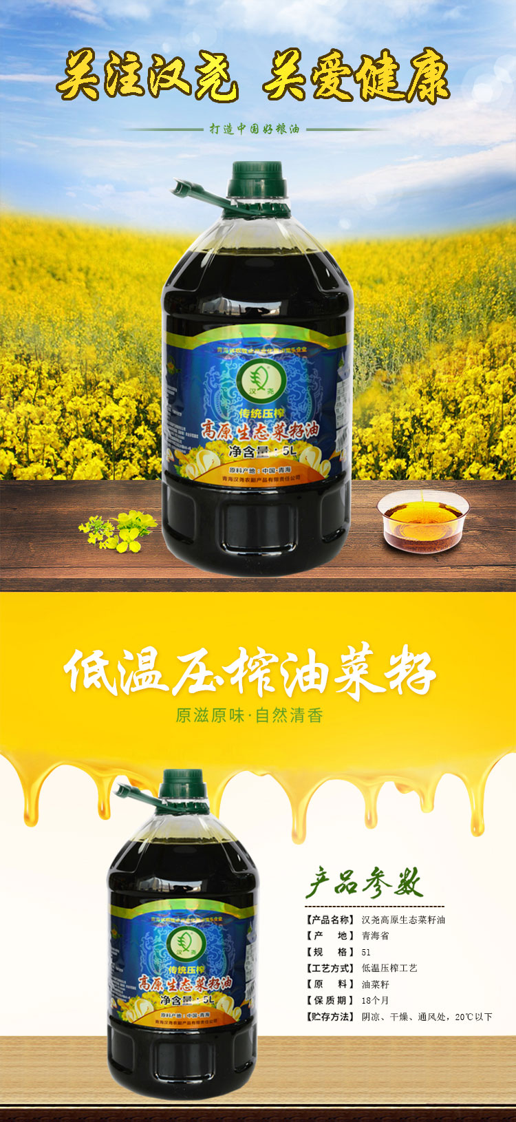 汉尧高原生态菜籽油 5L/桶 全国包邮