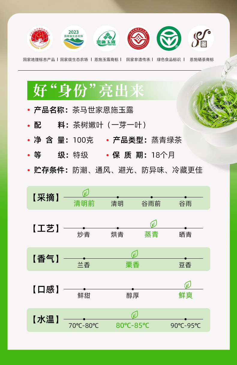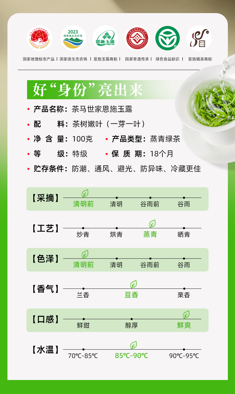 茶马世家2025新茶恩施玉露明前特级非遗蒸青绿茶富硒头采春茶100克