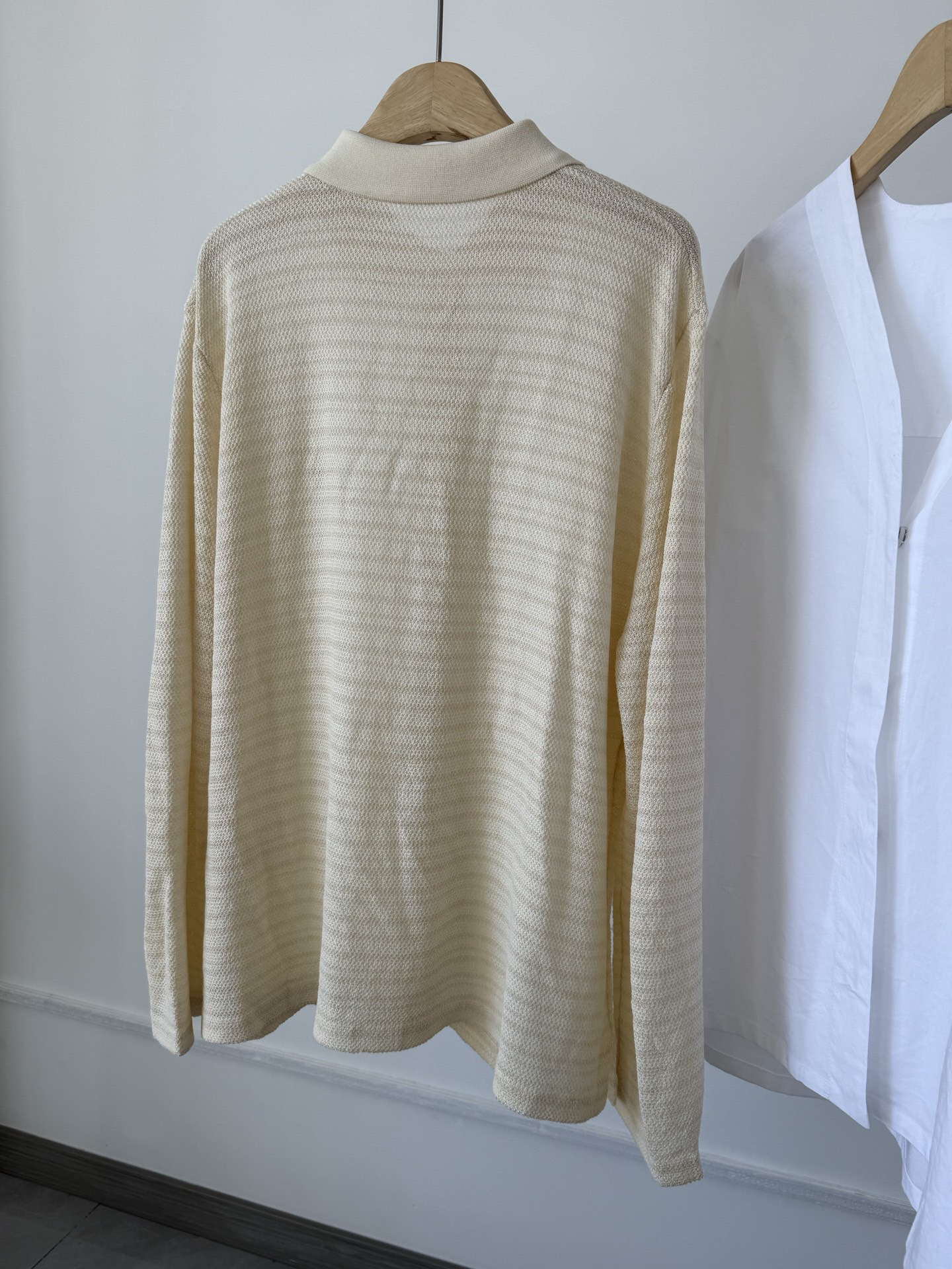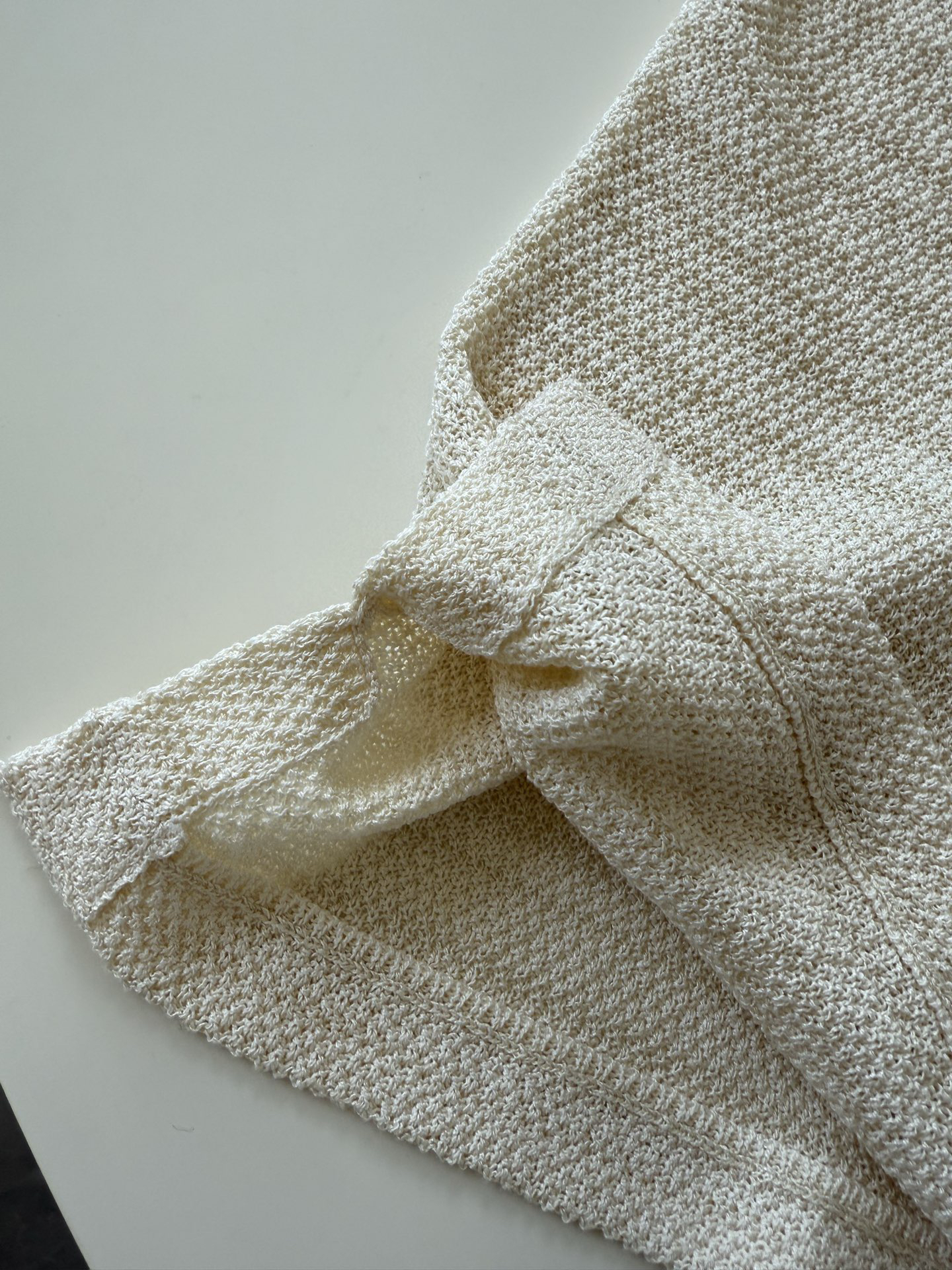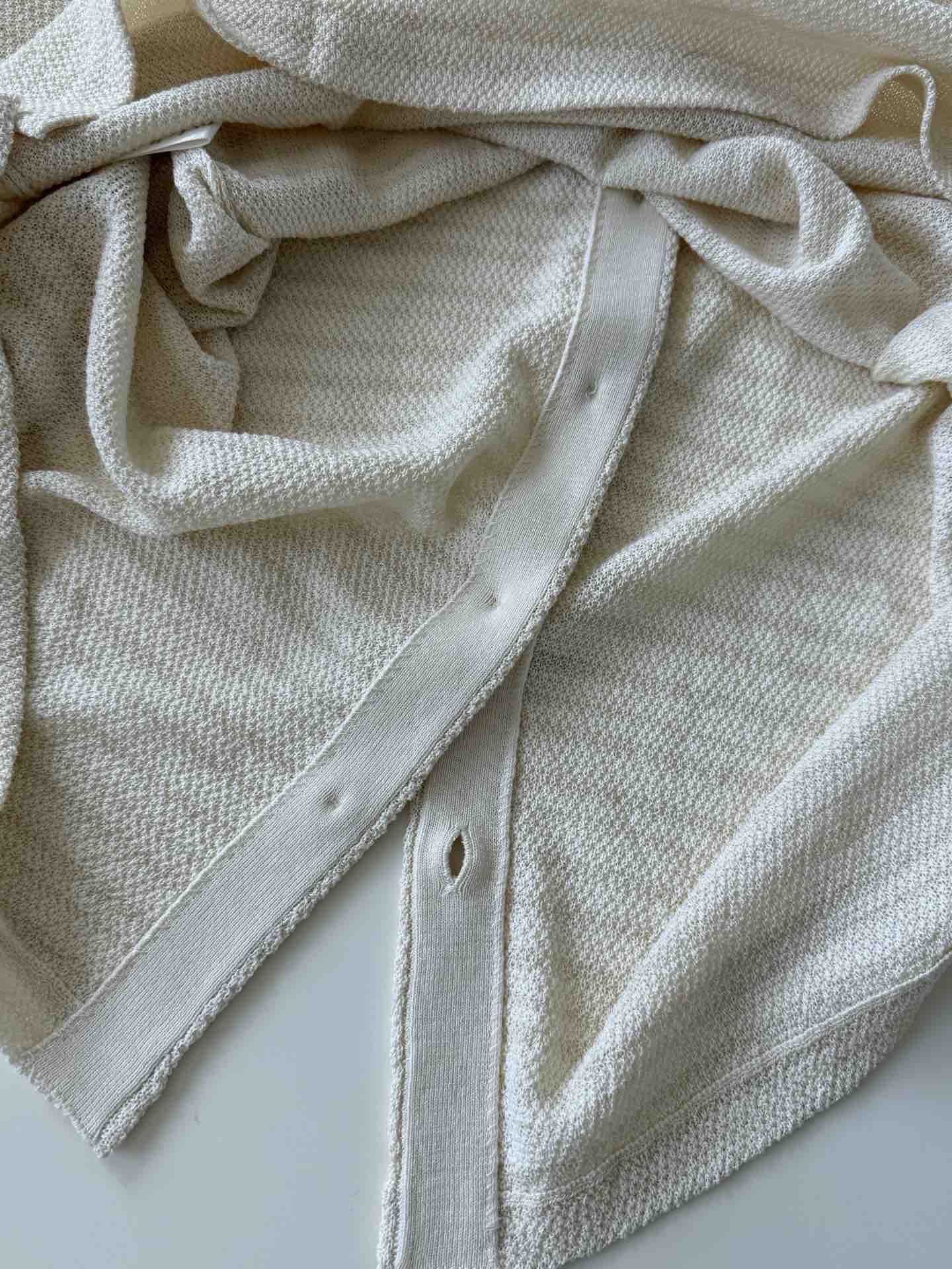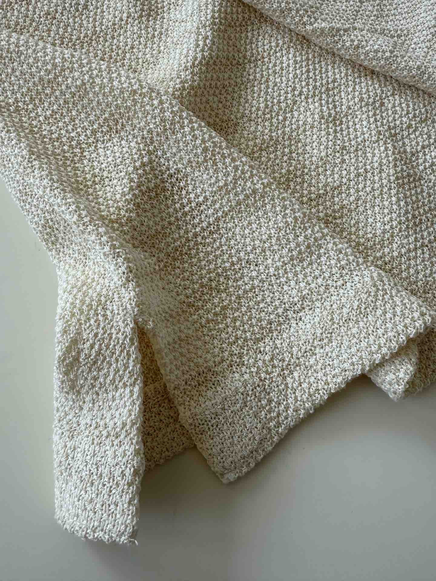 天然亚麻纱线,亚麻纤维自带天然的微孔隙结构,能在春夏季节快速导出体表湿气,保持肌肤干爽通透,它的凉感与透气性,在潮热天气中依然从容舒展,微透,颜色呈现自然的小麦色