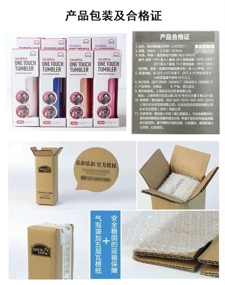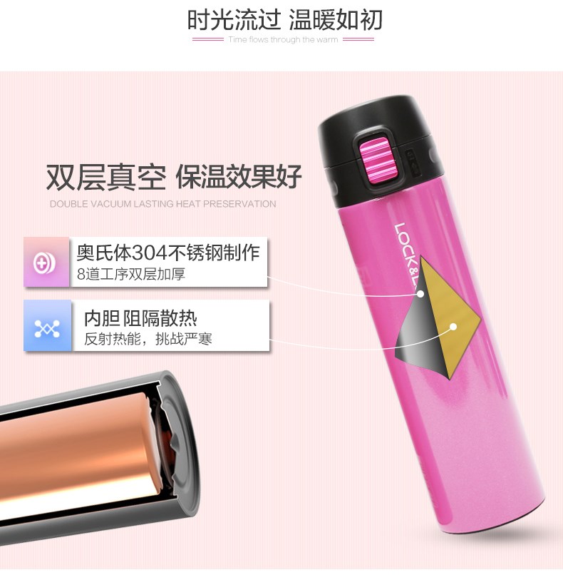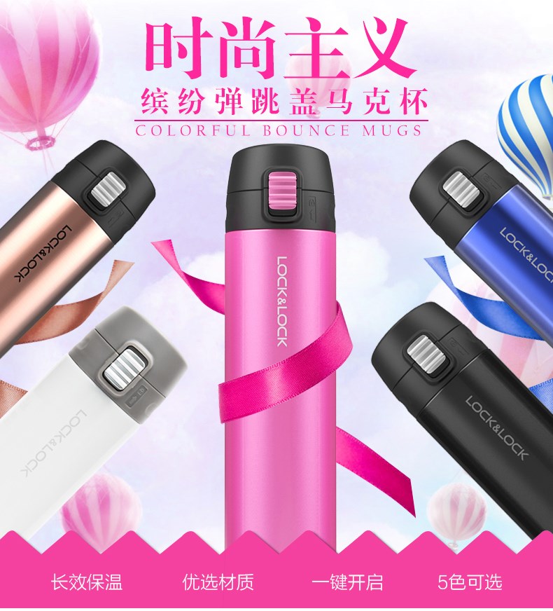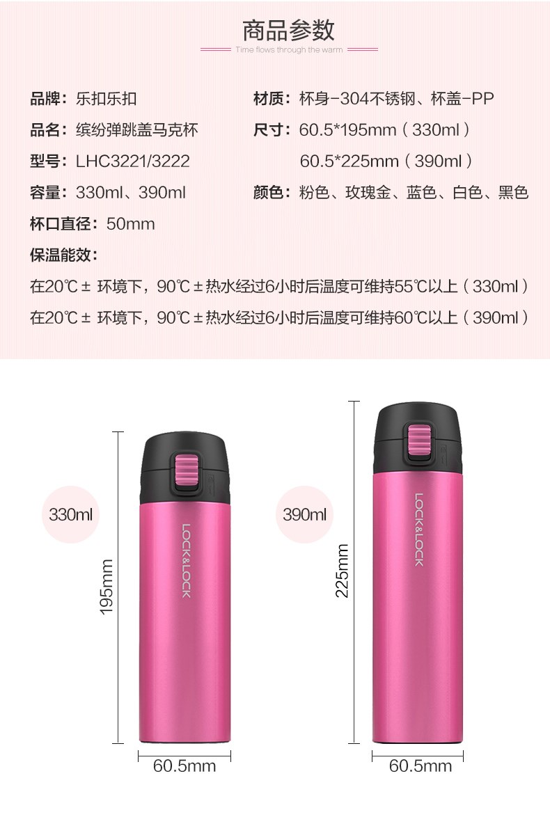 乐扣乐扣 缤纷保温杯弹跳盖直身简约水杯学生男女