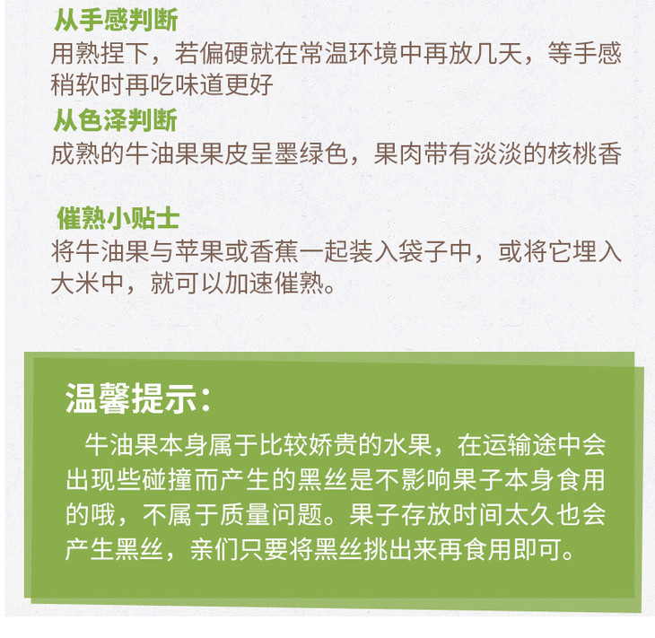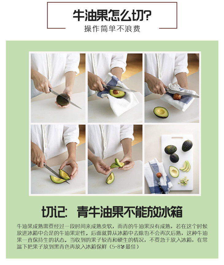 牛油果果肉柔软、细腻,富含以不饱和脂肪酸为主的油脂、多种矿物质和维生素等,且不含胆固醇,含糖量低,是老幼皆宜的高档水果,也是糖尿病人难得的高脂低糖食品,用果皮泡水饮用,对糖尿病有缓冲作用。富含维生素E及胡萝卜素等,具有良好的护肤、防晒与保健作用。能够防止动脉硬化、脑中风,因含铁量高,常吃可预防贫血