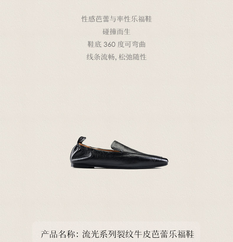 heelz设计师手工鞋履 |流光系列裂纹牛皮芭蕾乐福鞋1公分