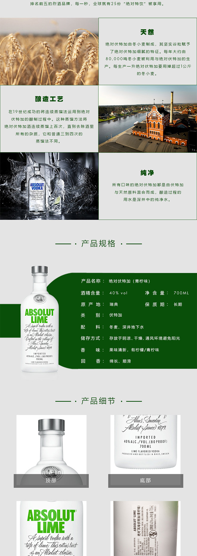 绝对伏特加青柠味 700ml/瓶