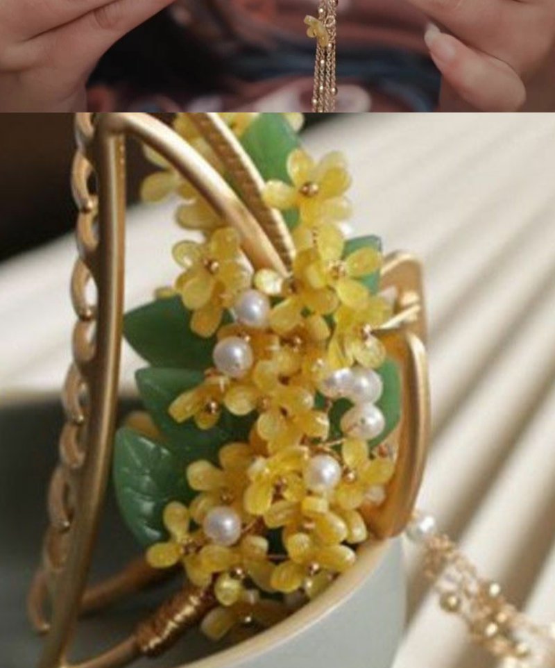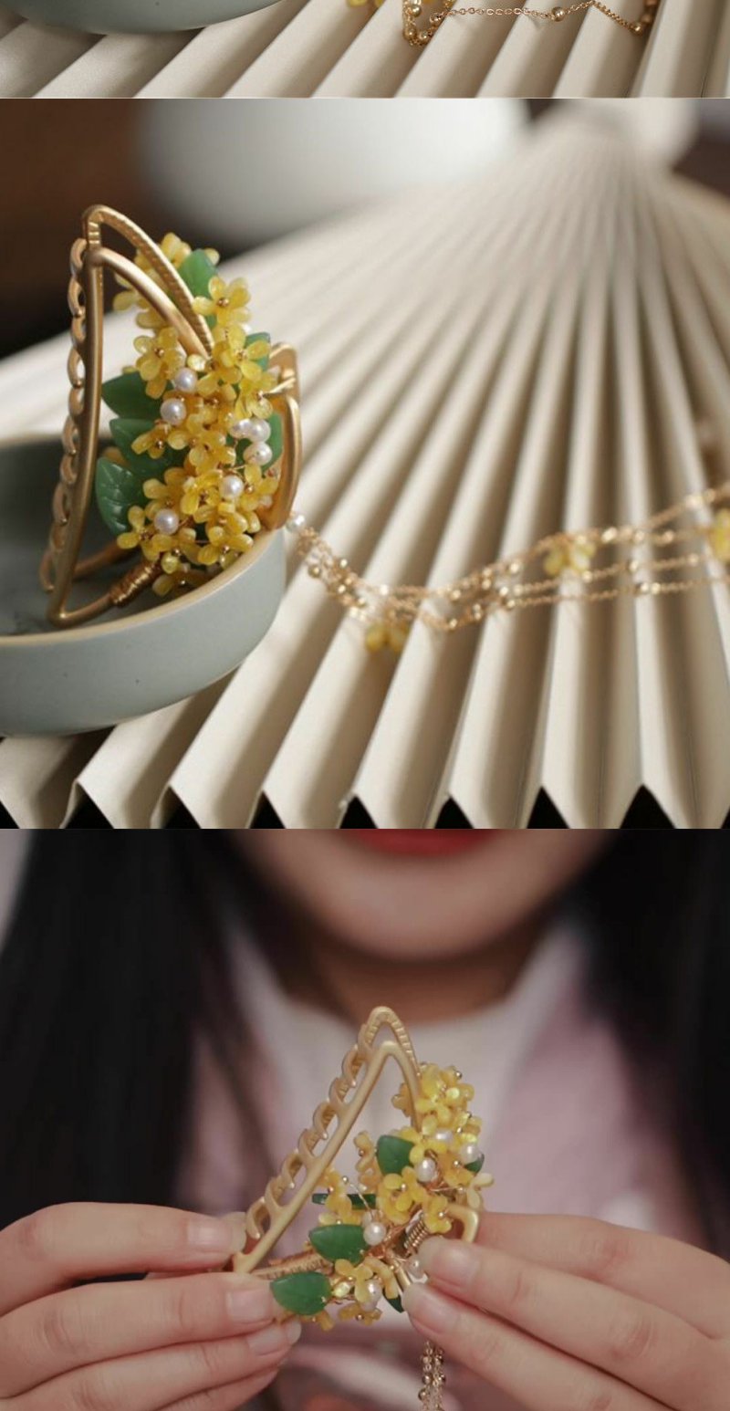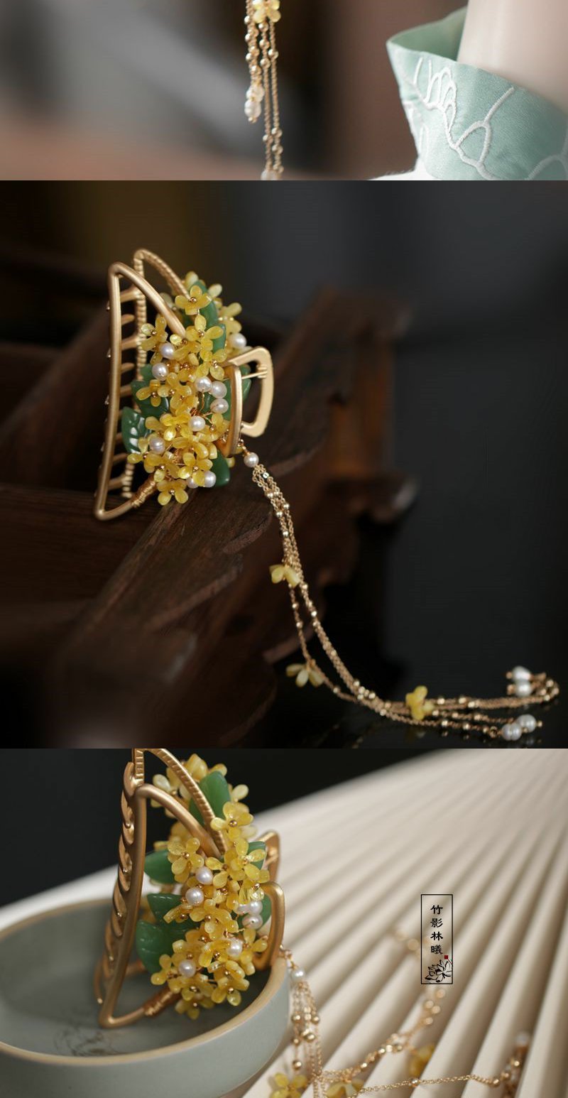 桂花发饰发夹后脑勺 丸子头抓夹女夏汉服古风配饰流苏女气质发抓