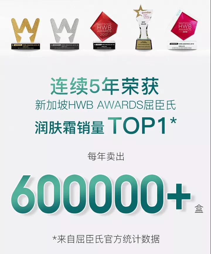 这款面霜更是连续5年,荣获了新加坡屈臣氏润肤霜销售TOP1!光是在新加坡一年都会卖出约600000+盒。