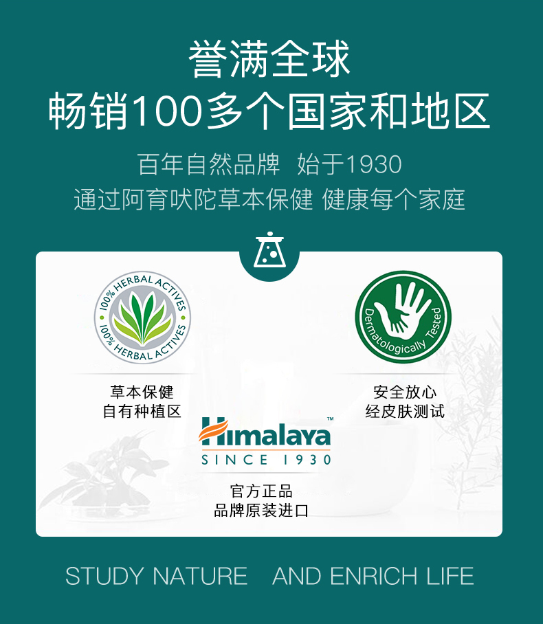 Himalaya成立于1930年,该公司严格遵循印度传统植物学,很多产品都是纯草本提炼。