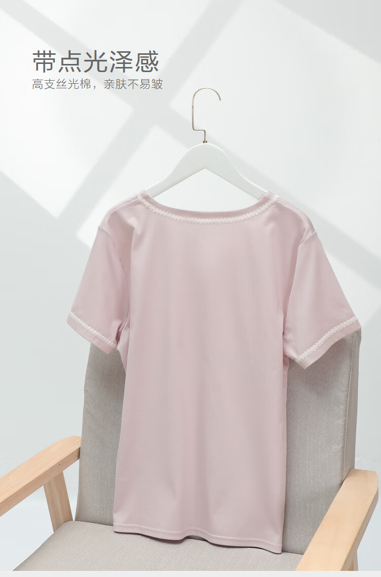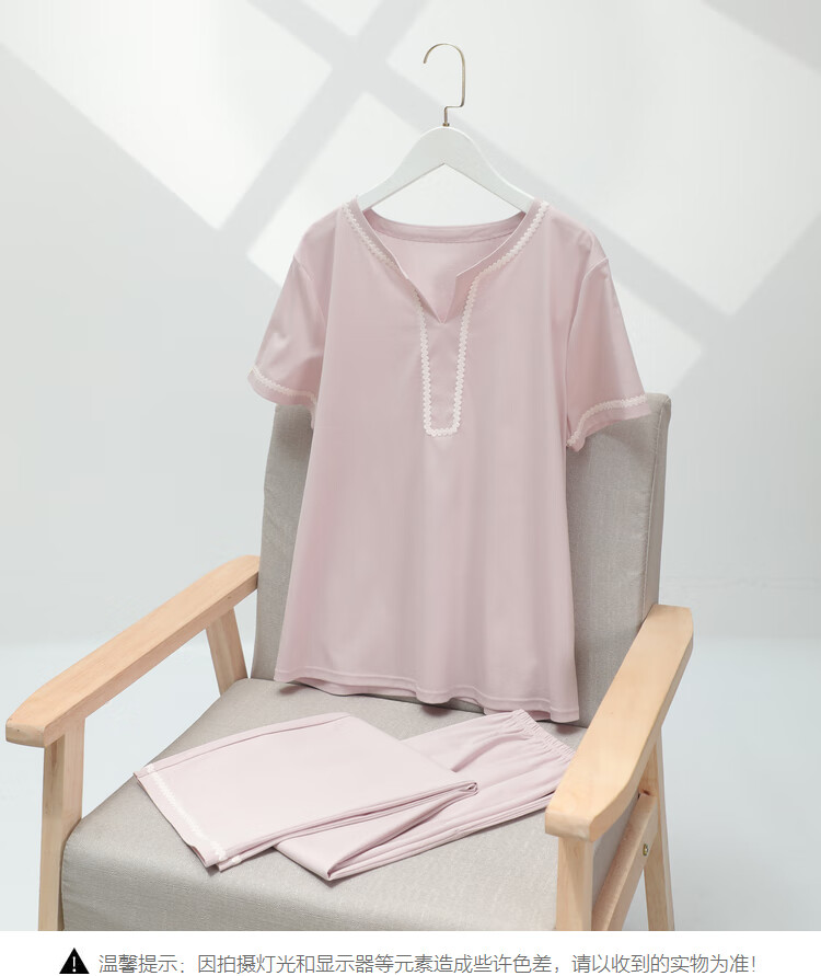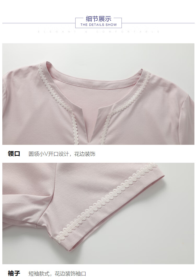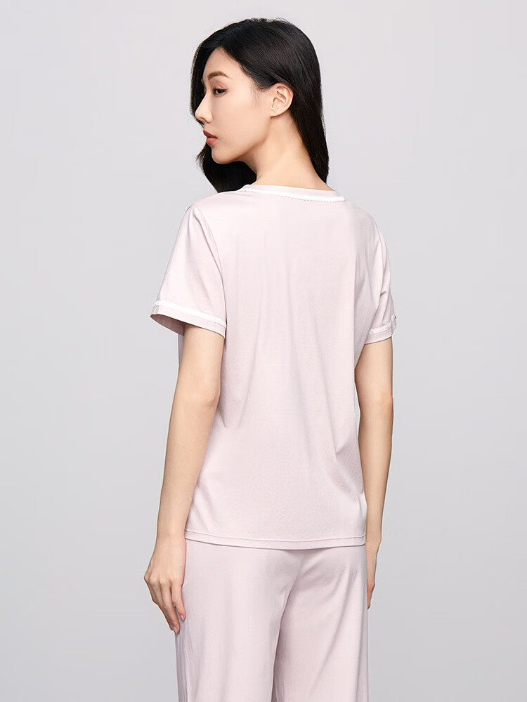 【3F】安莉芳专柜新品丝光棉小v圆领短袖睡衣睡裤女士家居服套装EL00719