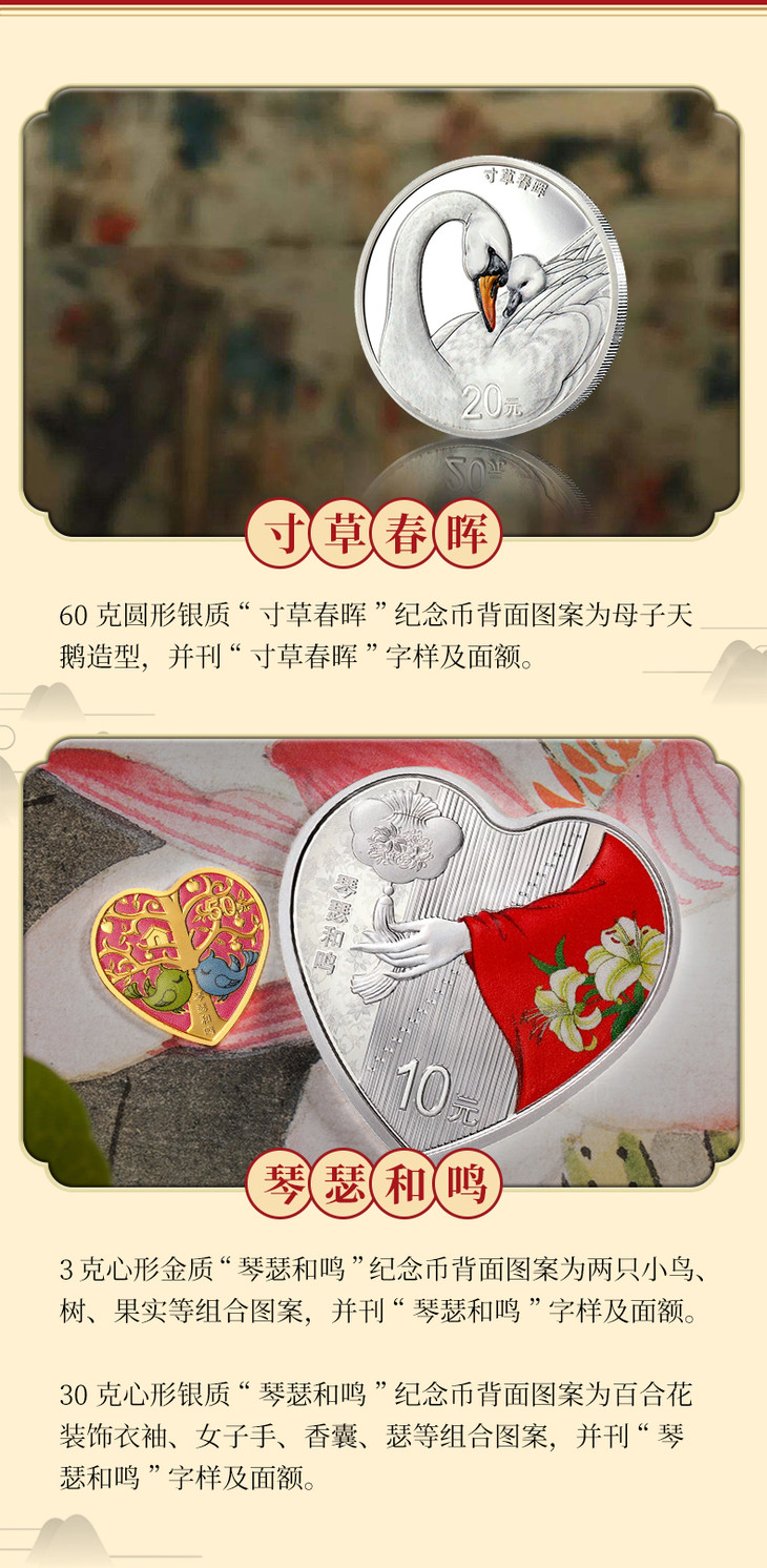 “琴瑟和鸣”心形金银币(人气)