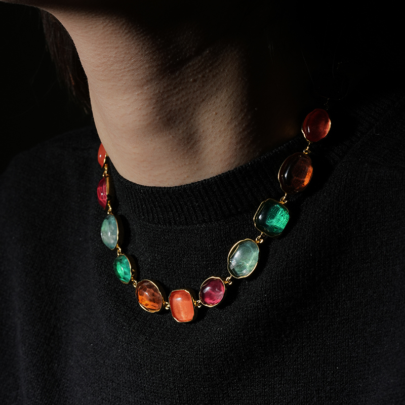 北京仓|Goossens Paris-CABOCHONS-彩虹色 岩石水晶 项链[法国设计师]