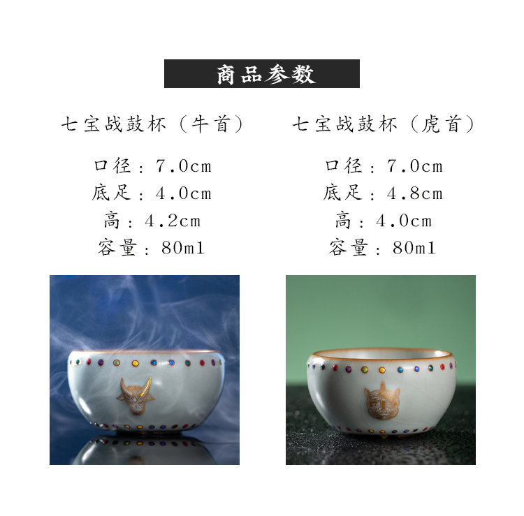 问鼎汝瓷天青七宝战鼓杯(虎首)(牛首)(缺货)