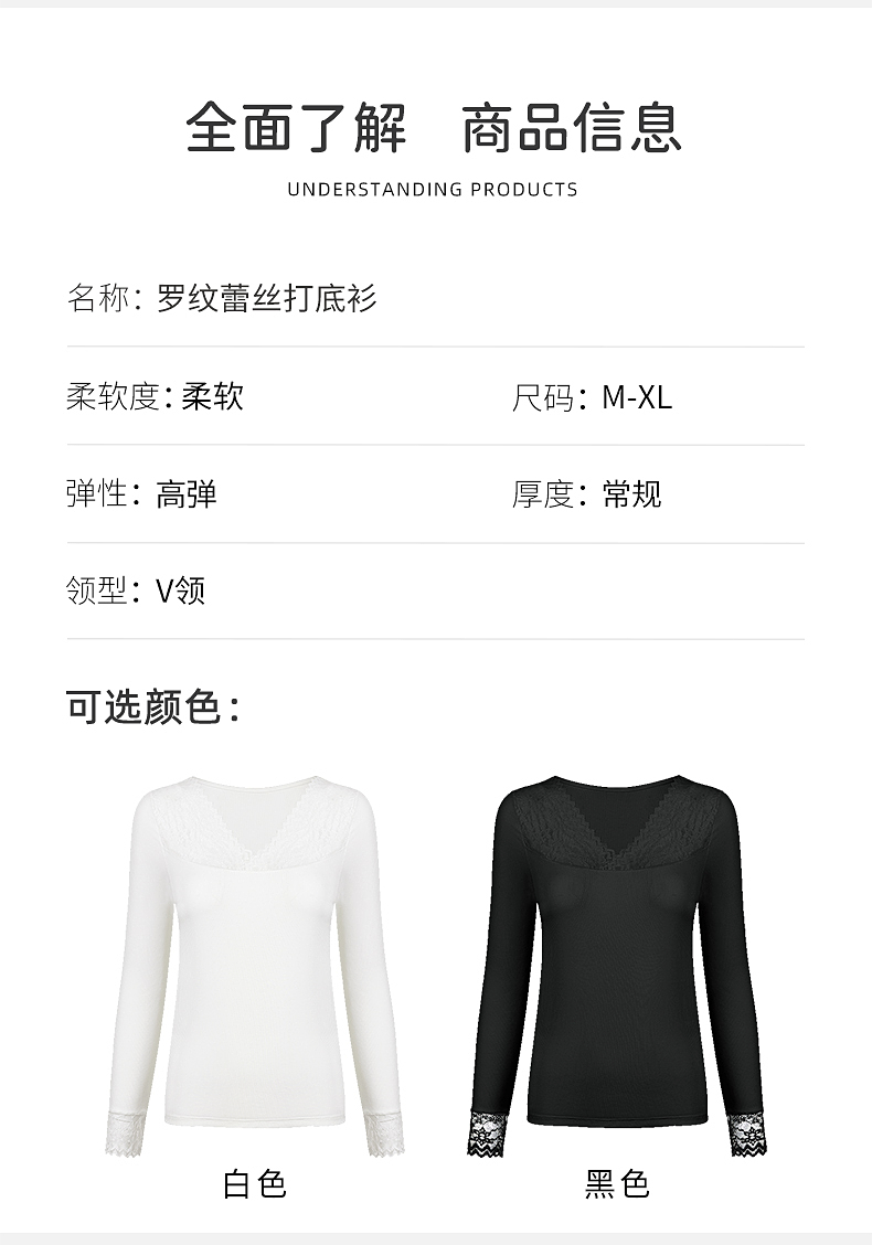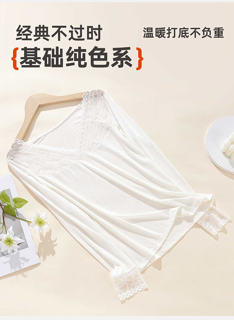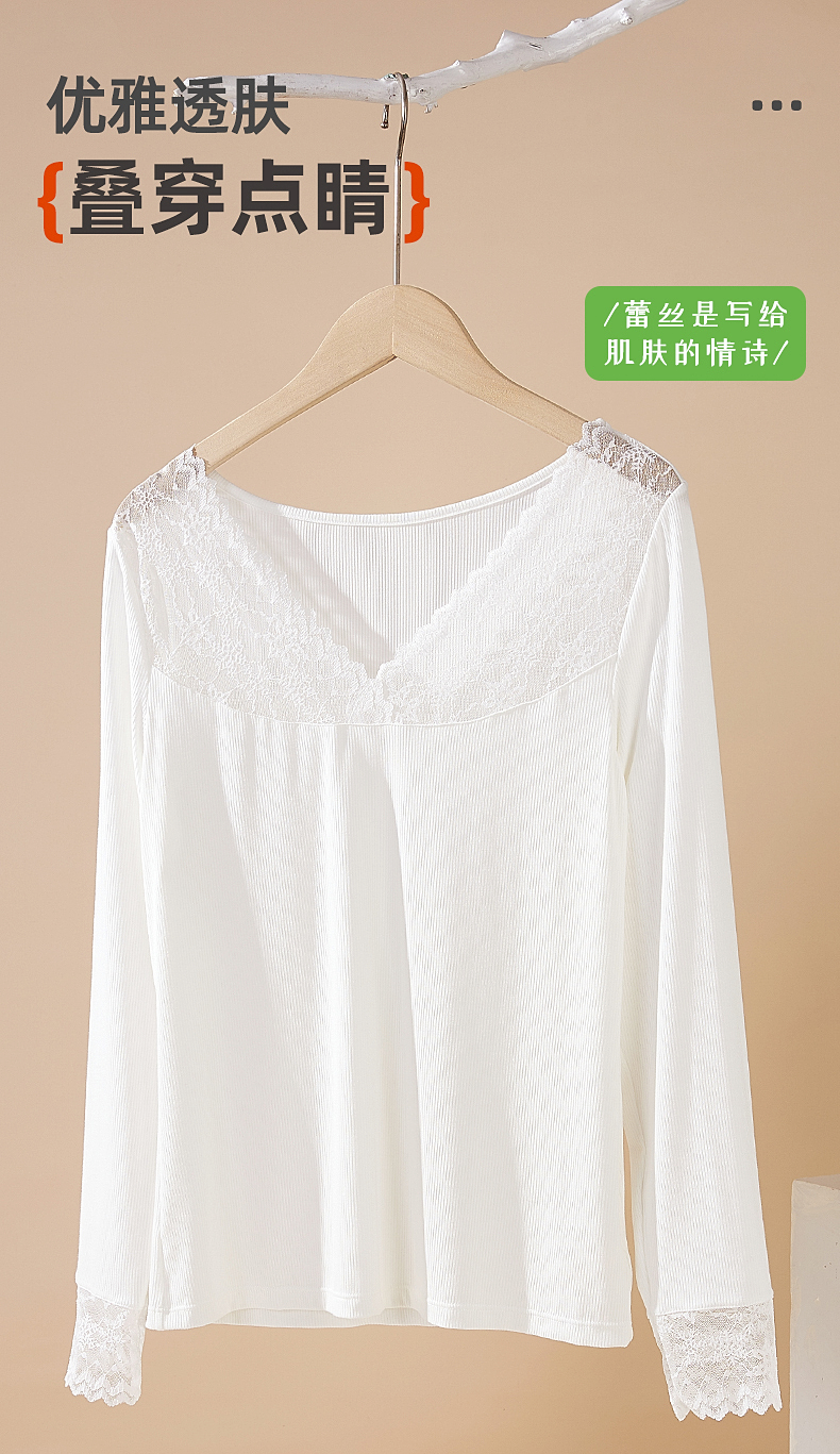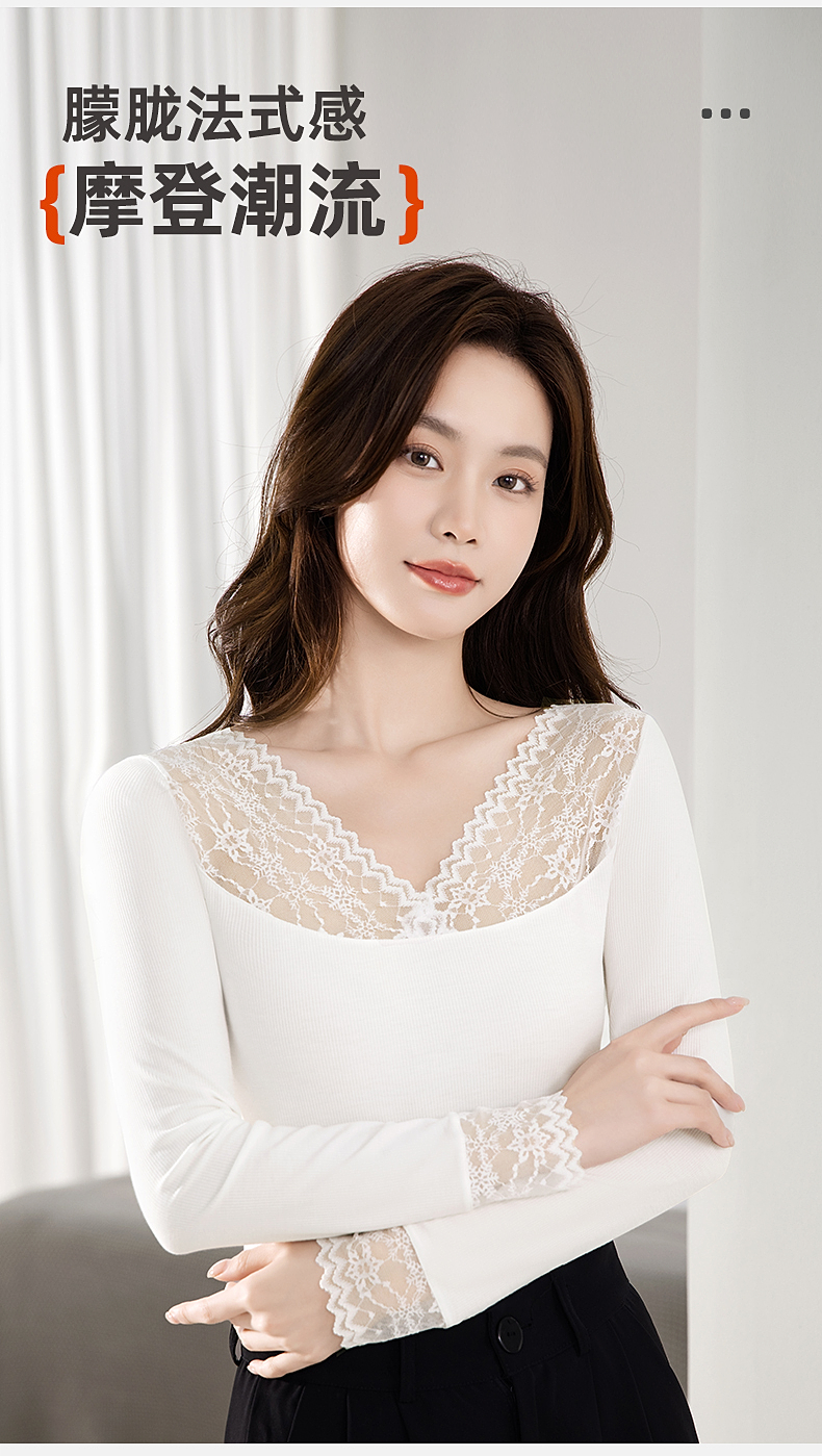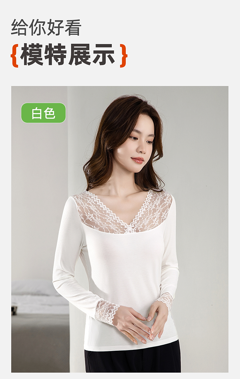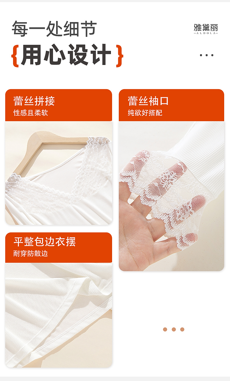 ALDOLA/雅黛俪V领性感蕾丝打底衫女内搭薄款修身显瘦保暖衣2025新