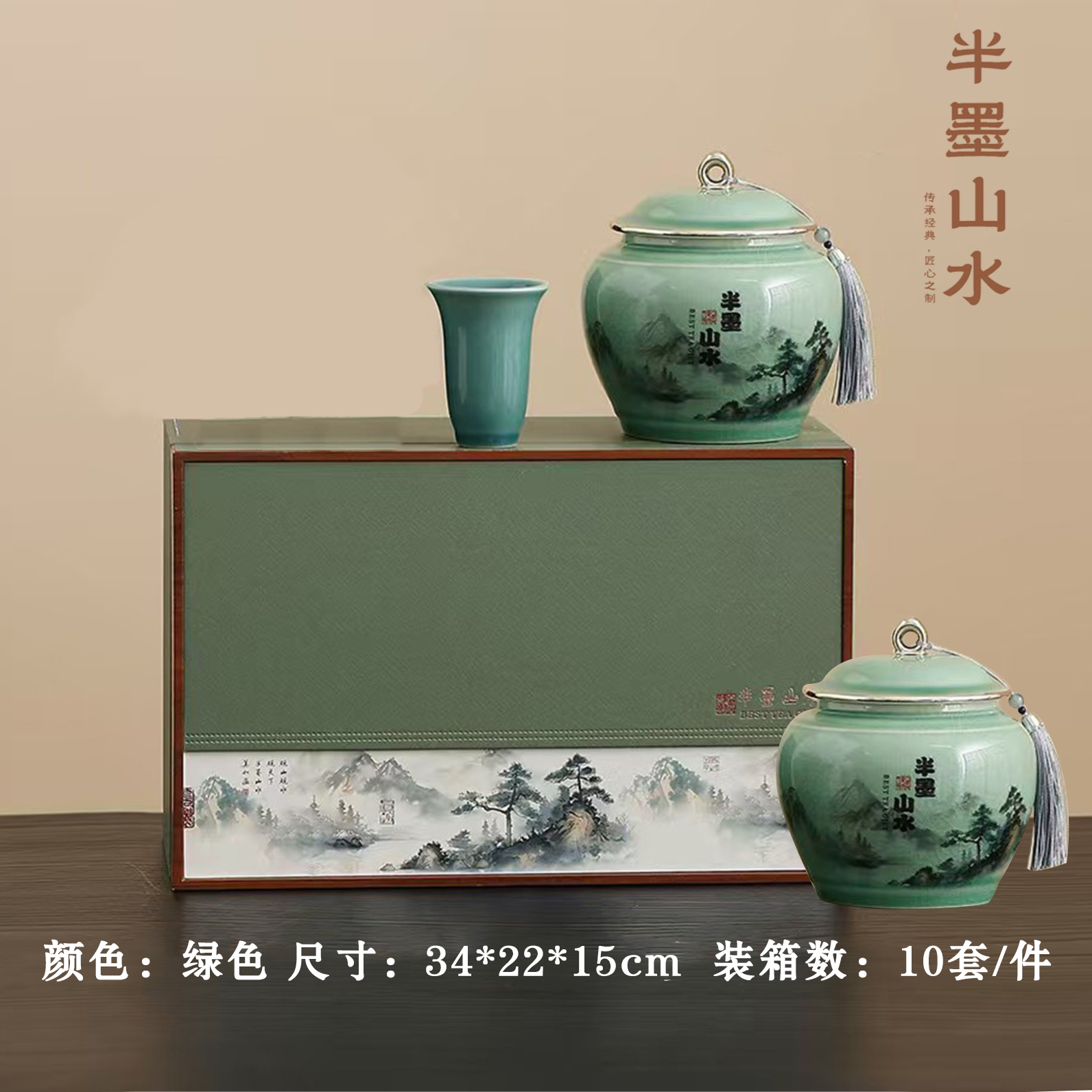 半墨山水【绿.2瓷+1瓷杯】50元1套.共1套【尾货满10套包邮】