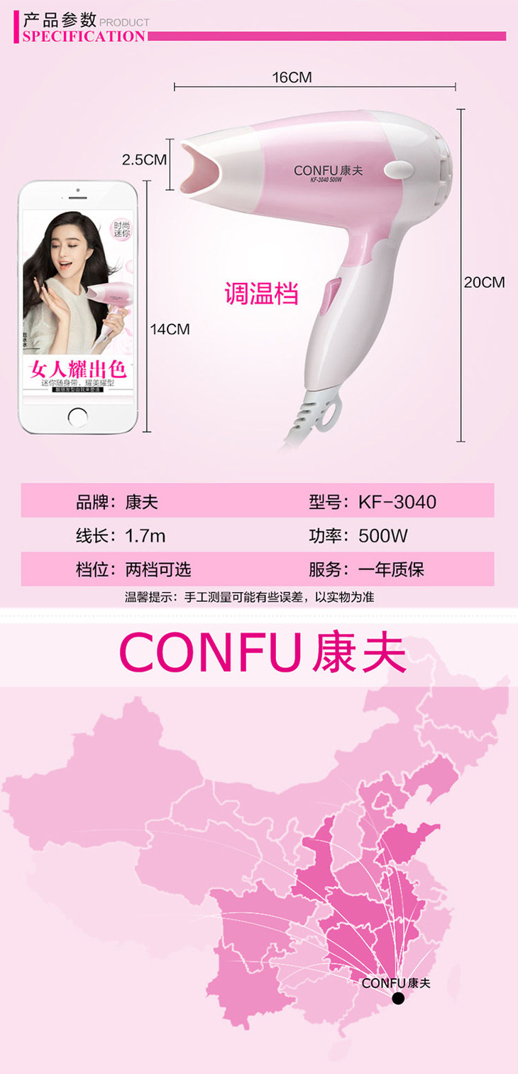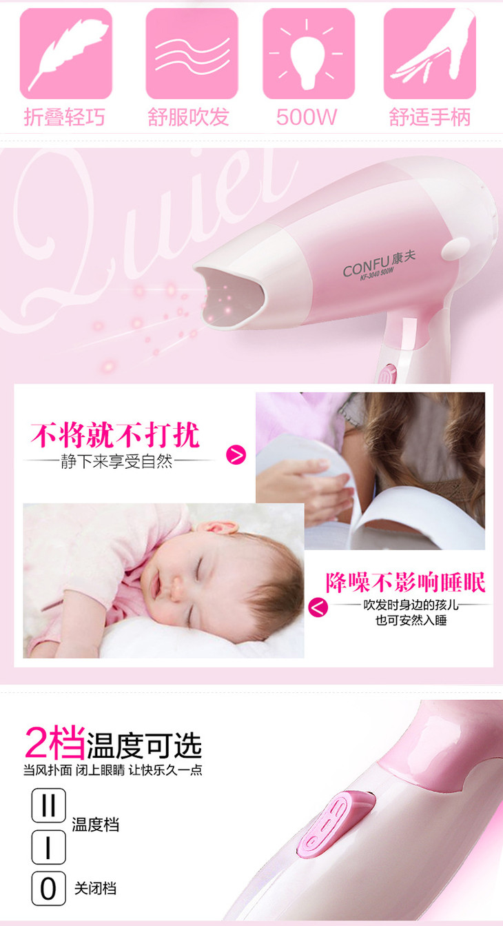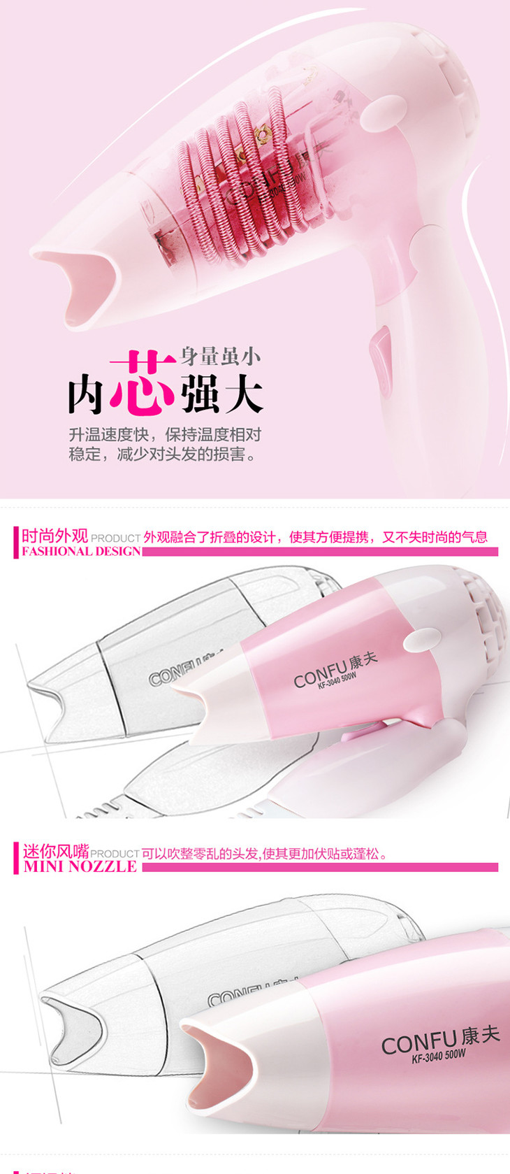 【家用电器】康夫3040迷你折叠礼品电吹风机小功率500W学生家用吹风筒