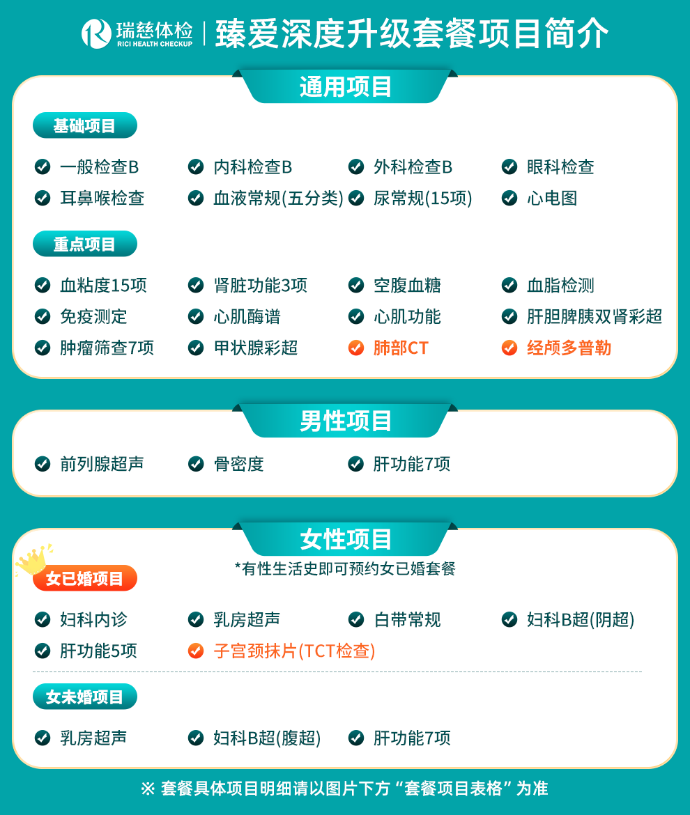 | 套餐名称:臻爱深度体检套餐升级版 | |||||