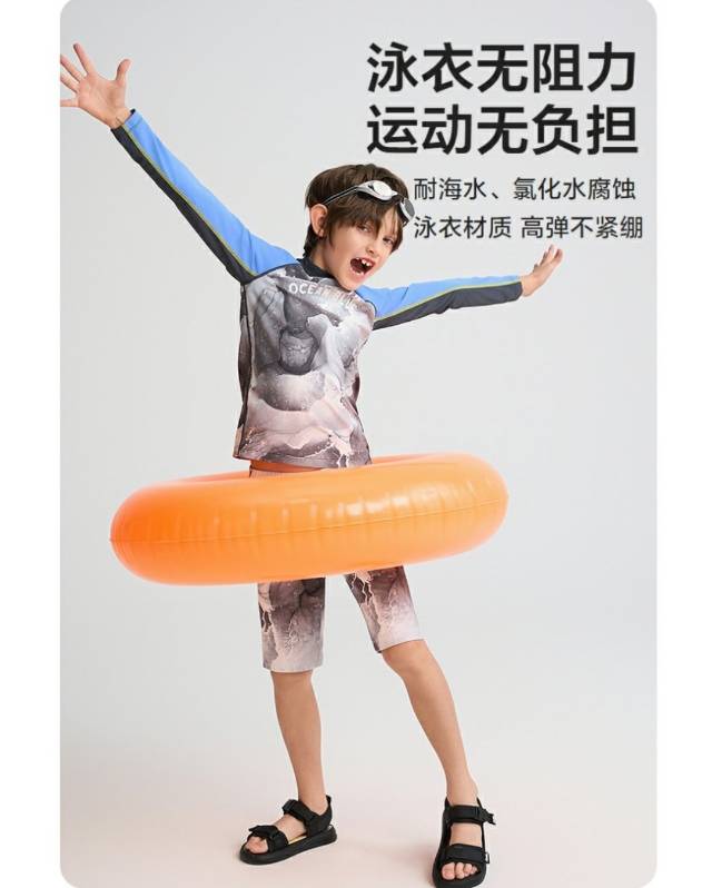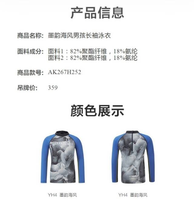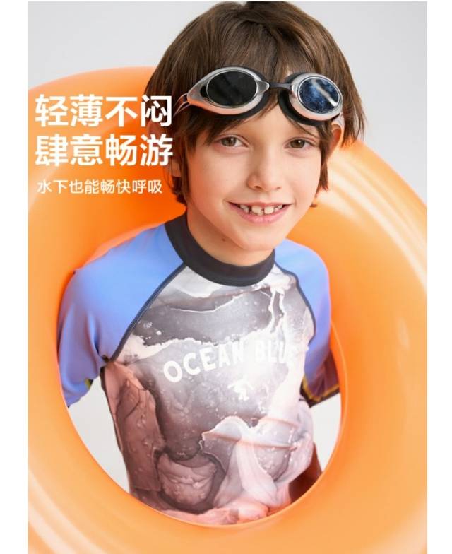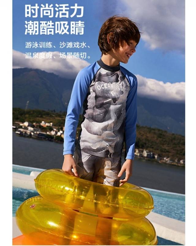 【春上新】8楼爱慕儿童Aimer Kids男孩墨韵海风长袖泳衣AK267H252,吊牌价359元