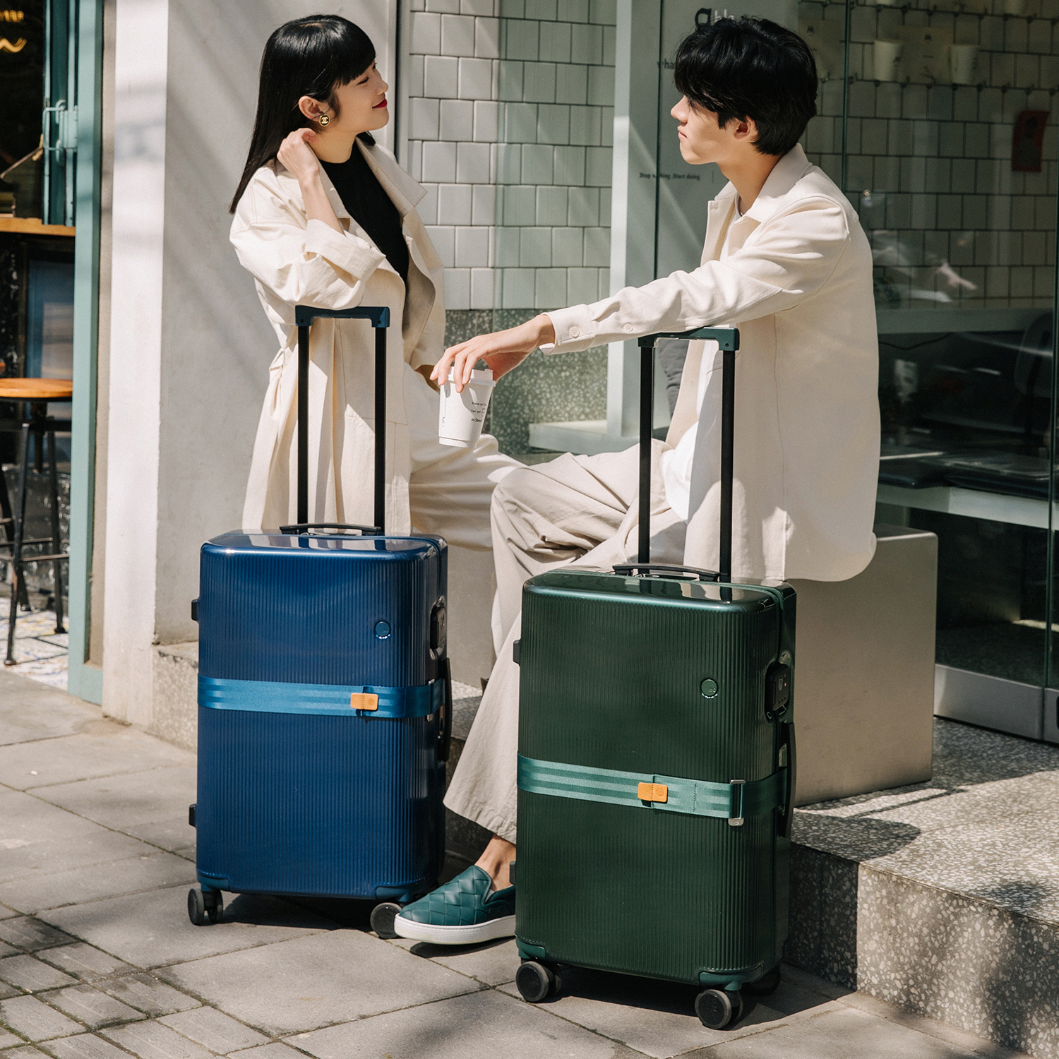【多个尺寸可选】ITO--PISTACHIO STRIPED 开心果 一代旅行箱-森绿色