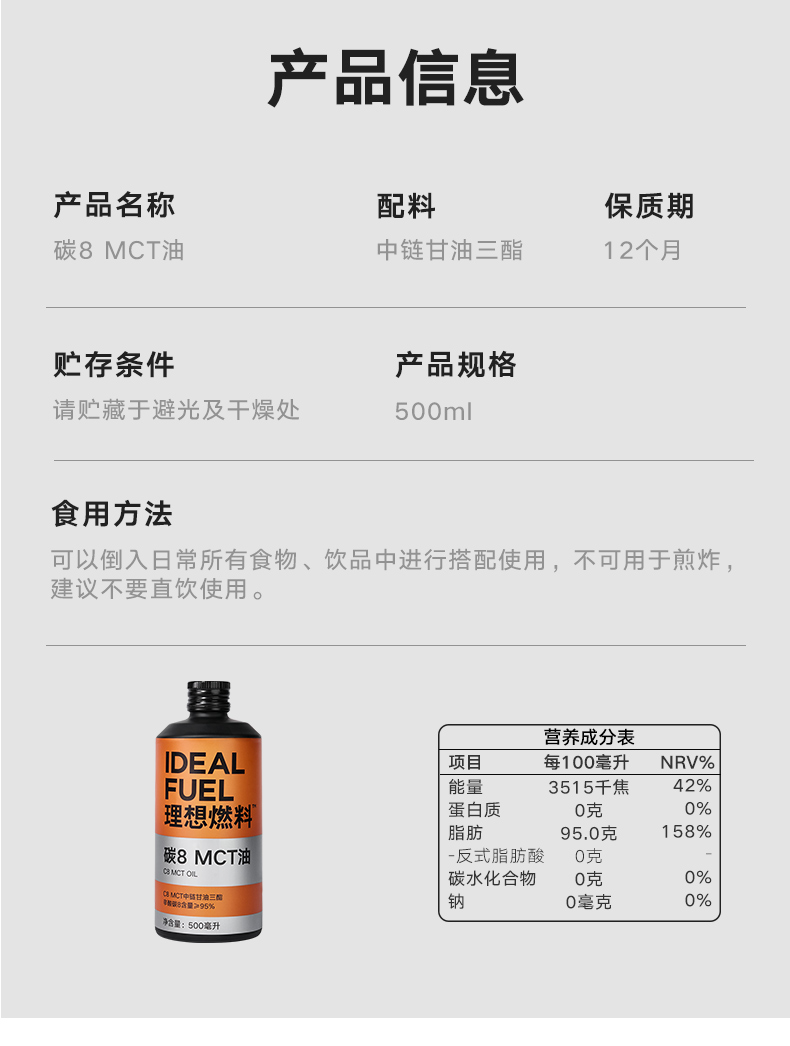 【3月5日|限时限量秒杀】理想燃料 | 碳8MCT油 500ml/瓶