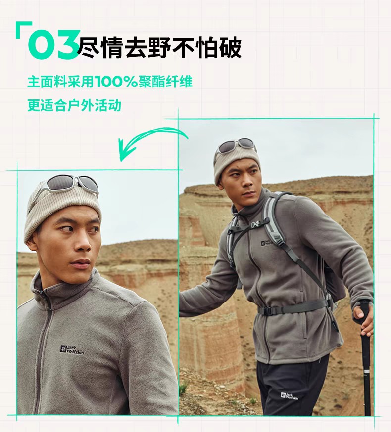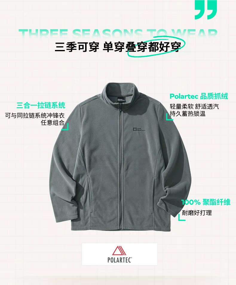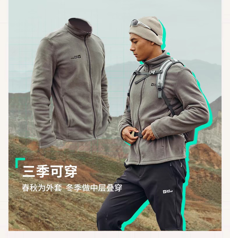 【云粉节】【6折】6楼JACKWOLFSKIN狼爪TAUNUS男女情侣款男款轻量保暖抓绒夹克5032751-1010吊牌价699折后419
