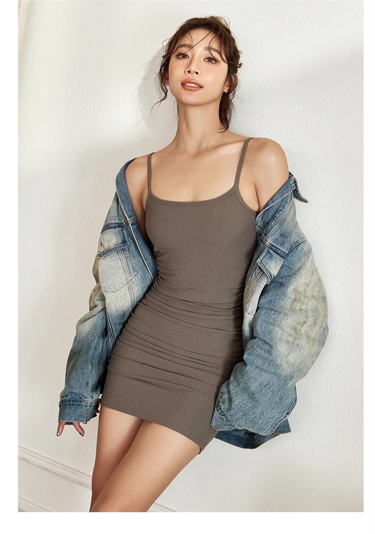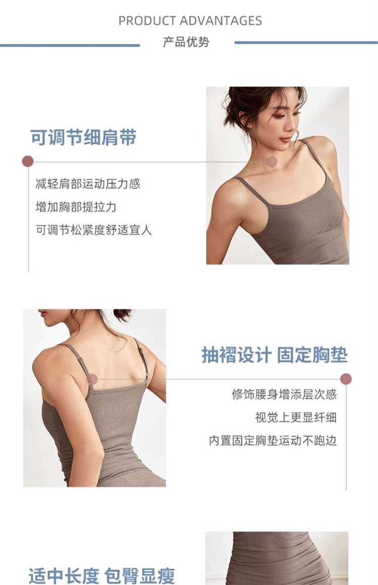 跃牌【周游世界系列】螺纹高弹透气一体式运动吊带裙 TP0721