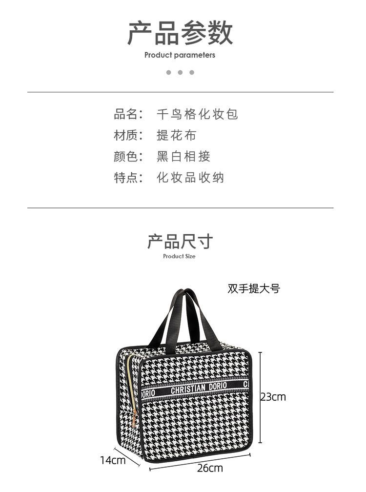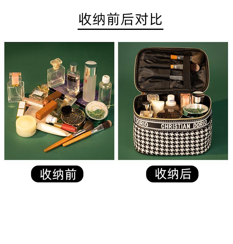 新款千鸟格化妆包ins洗漱收纳包化妆品收纳包便携耐脏百搭手提包