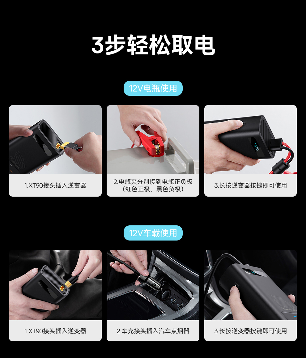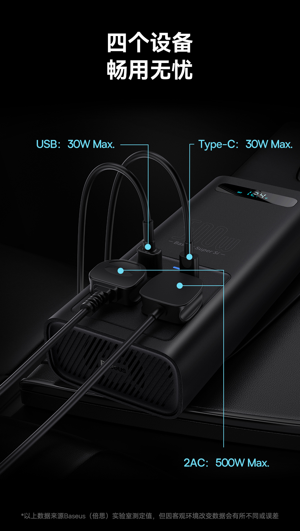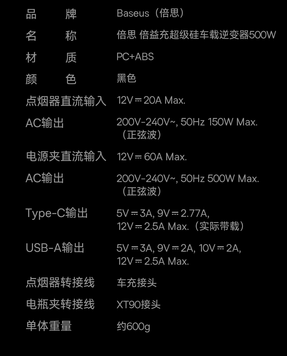 倍益充超级硅车载逆变器500W(220V中欧规)