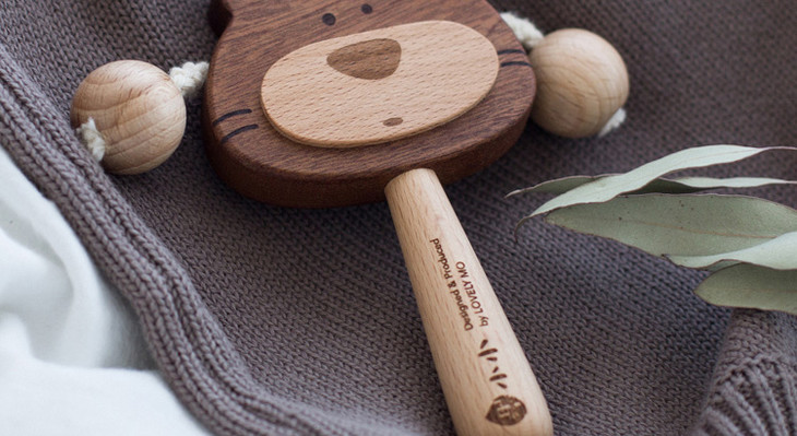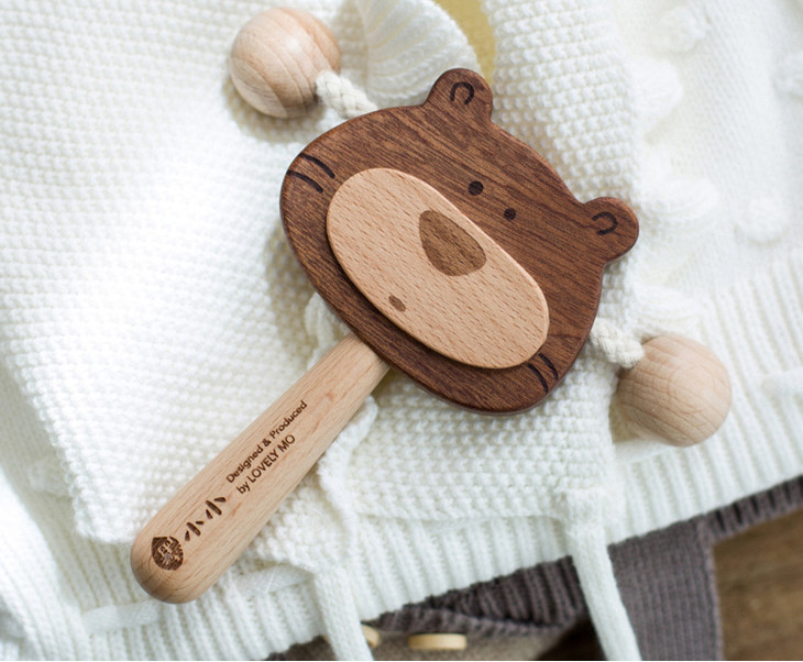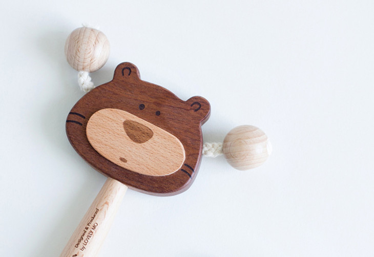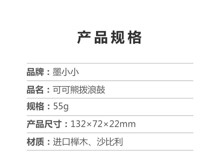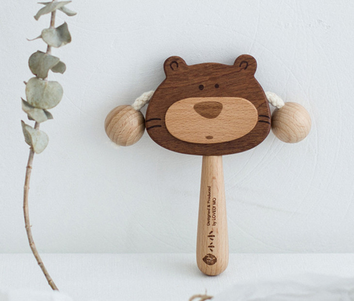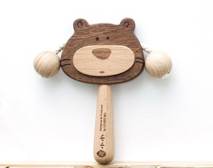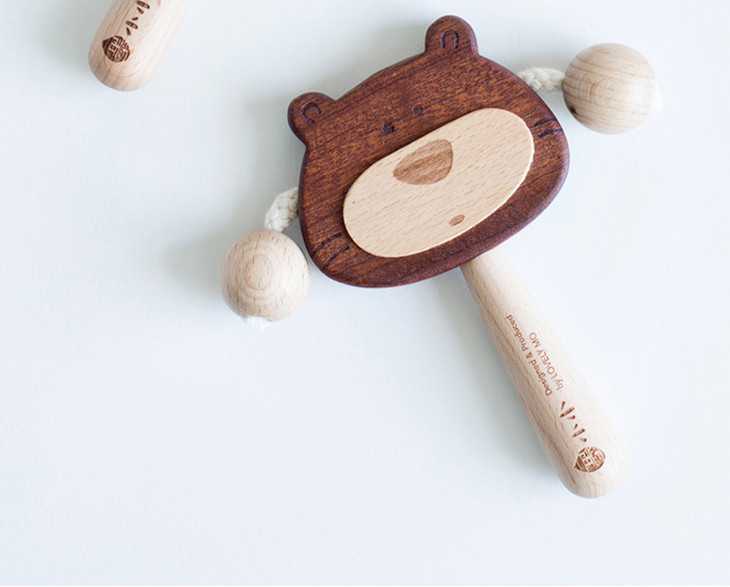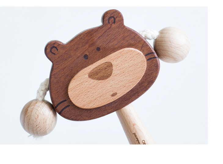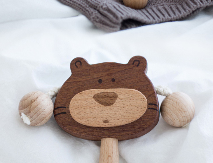 【6个月+】墨小小 可可熊拨浪鼓 木质传统婴儿啃咬儿童玩具
