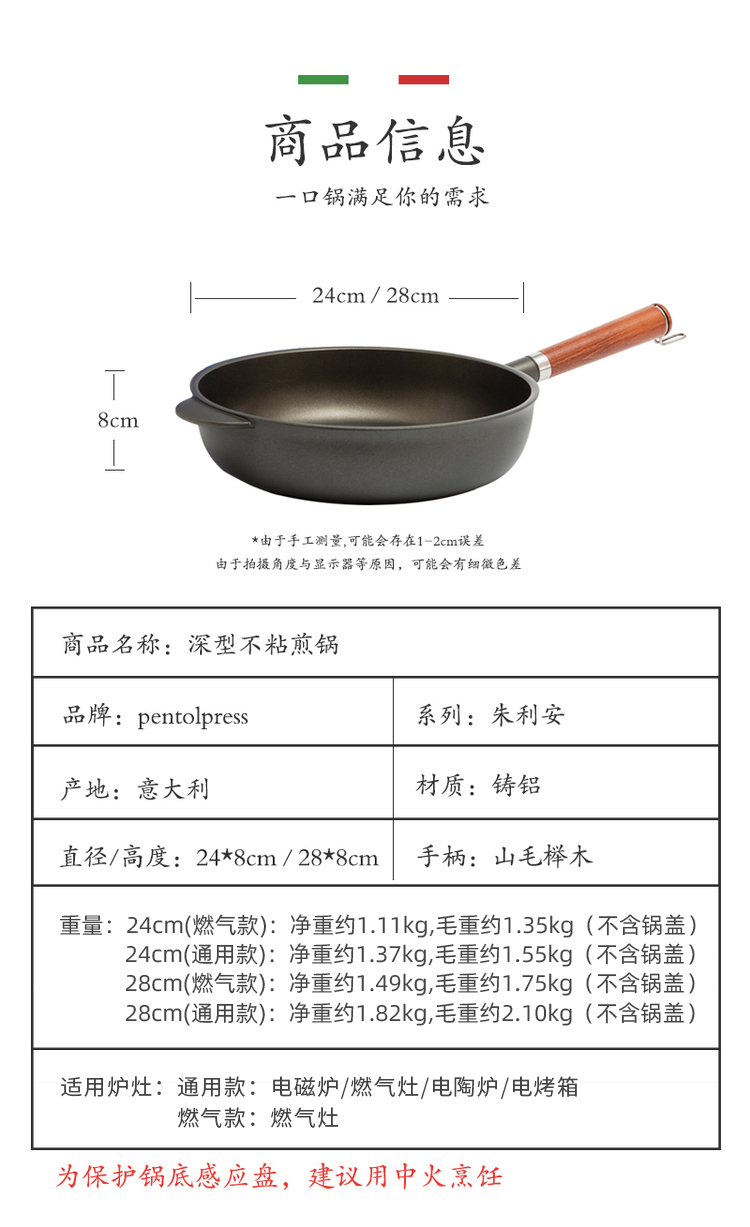 【文怡之选】PENTOLPRESS朱利安系列煎炒两用锅 不粘锅 炒锅煎锅多用 防刮耐磨 意大利原产 24cm/28cm