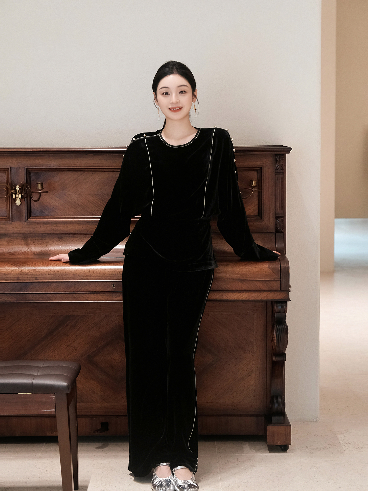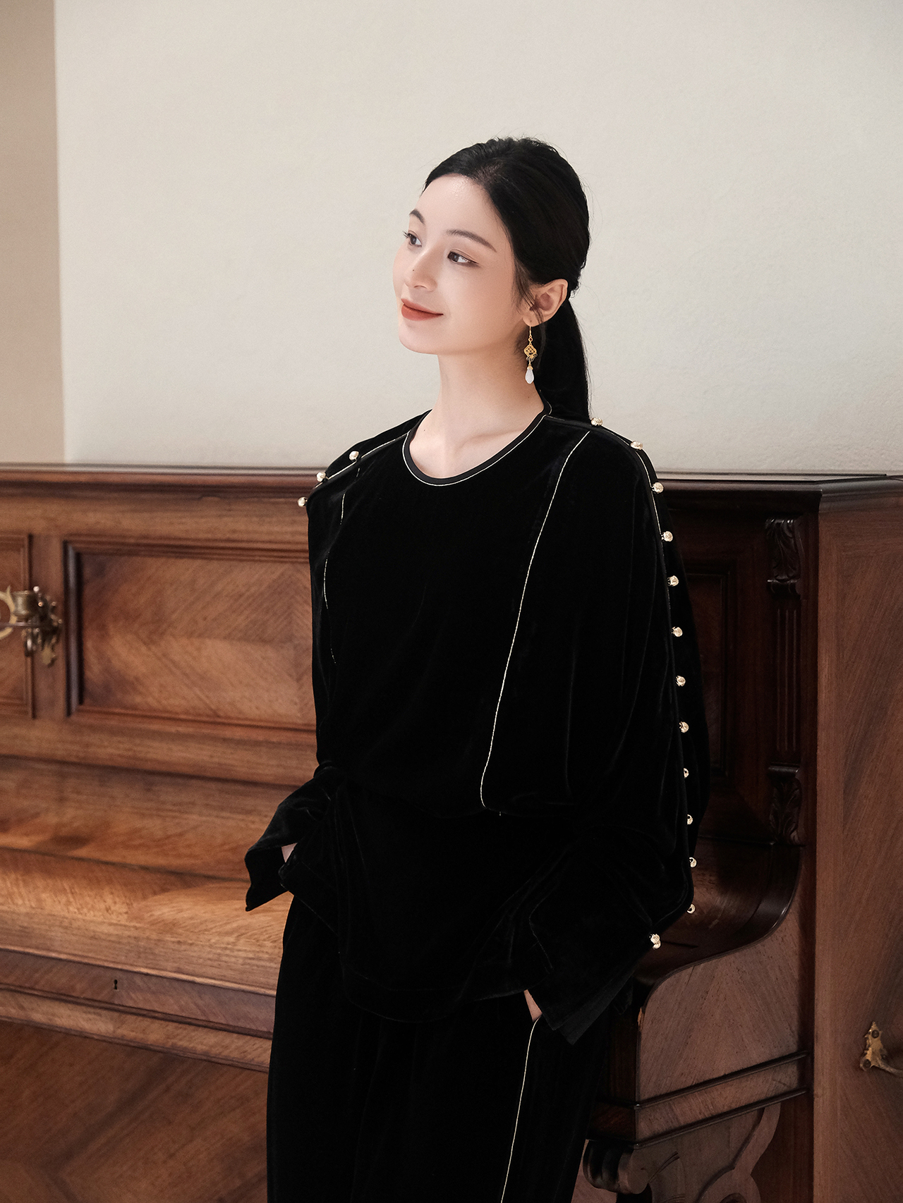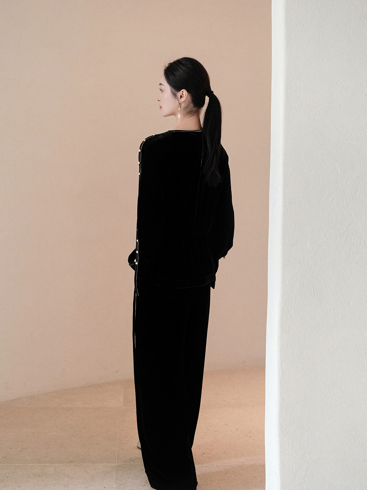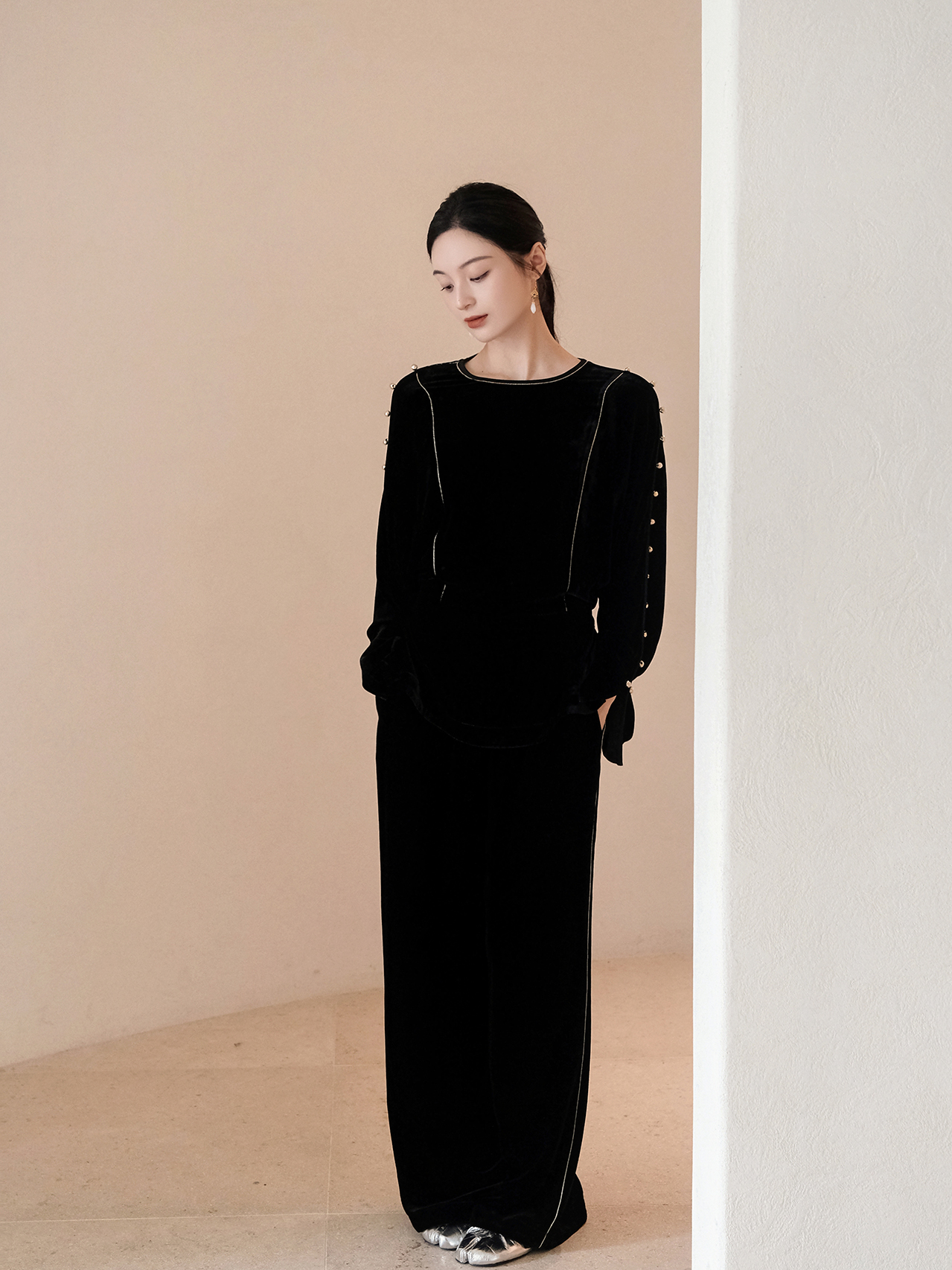 盛唐婧| 重磅真丝绒落肩轻奢设计款上衣